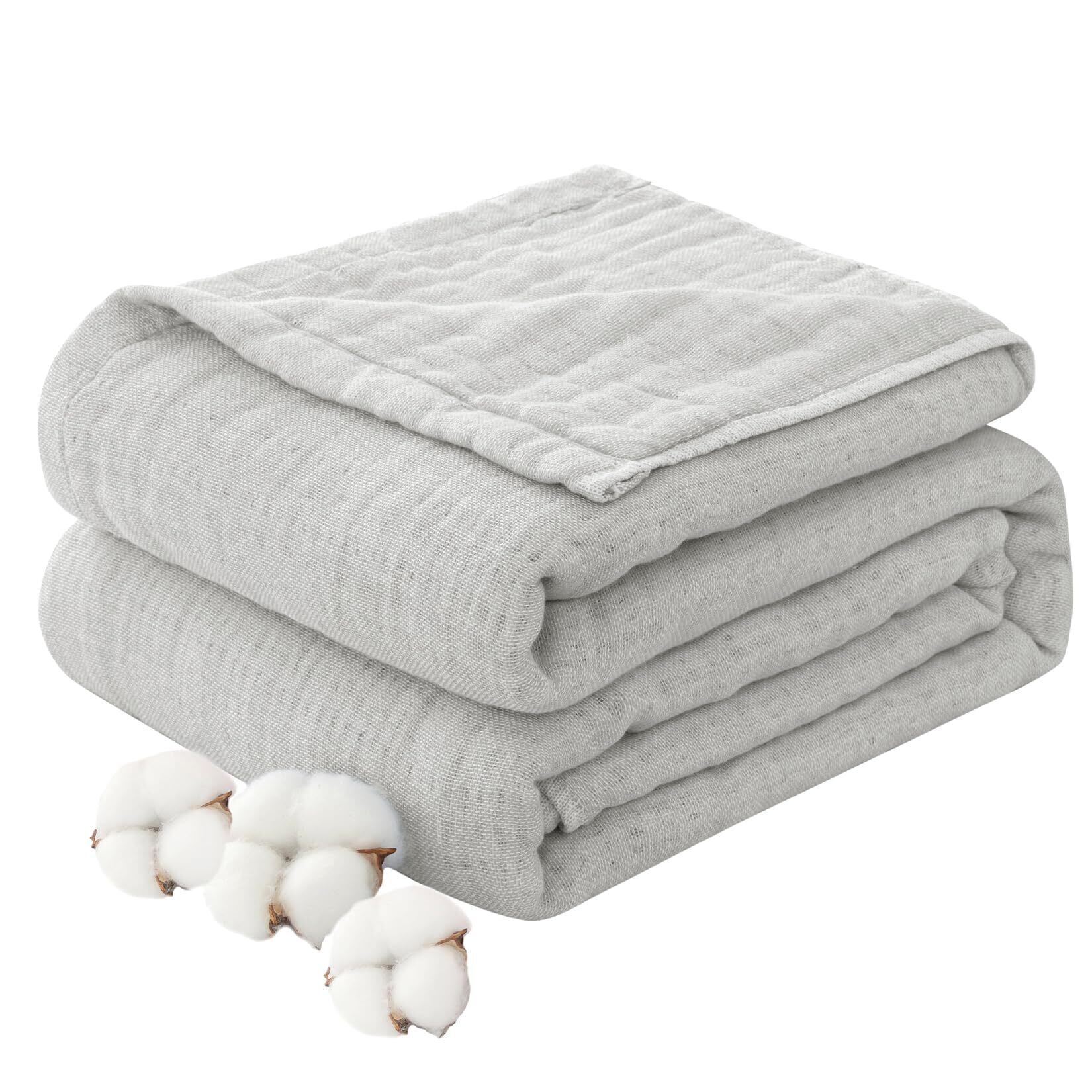fuwawa ガーゼケット シングル 6重織り 天然綿100% 吸湿 通気 綿 お昼寝ケット 肌掛け やわらか 夏快眠 肌に優しい 年中快適 丸洗いOK 抗菌・防臭・防ダニ 洗える 軽量 リバーシブル 冷房対策 ガーゼけっと 140x190cm (無地,グレー)