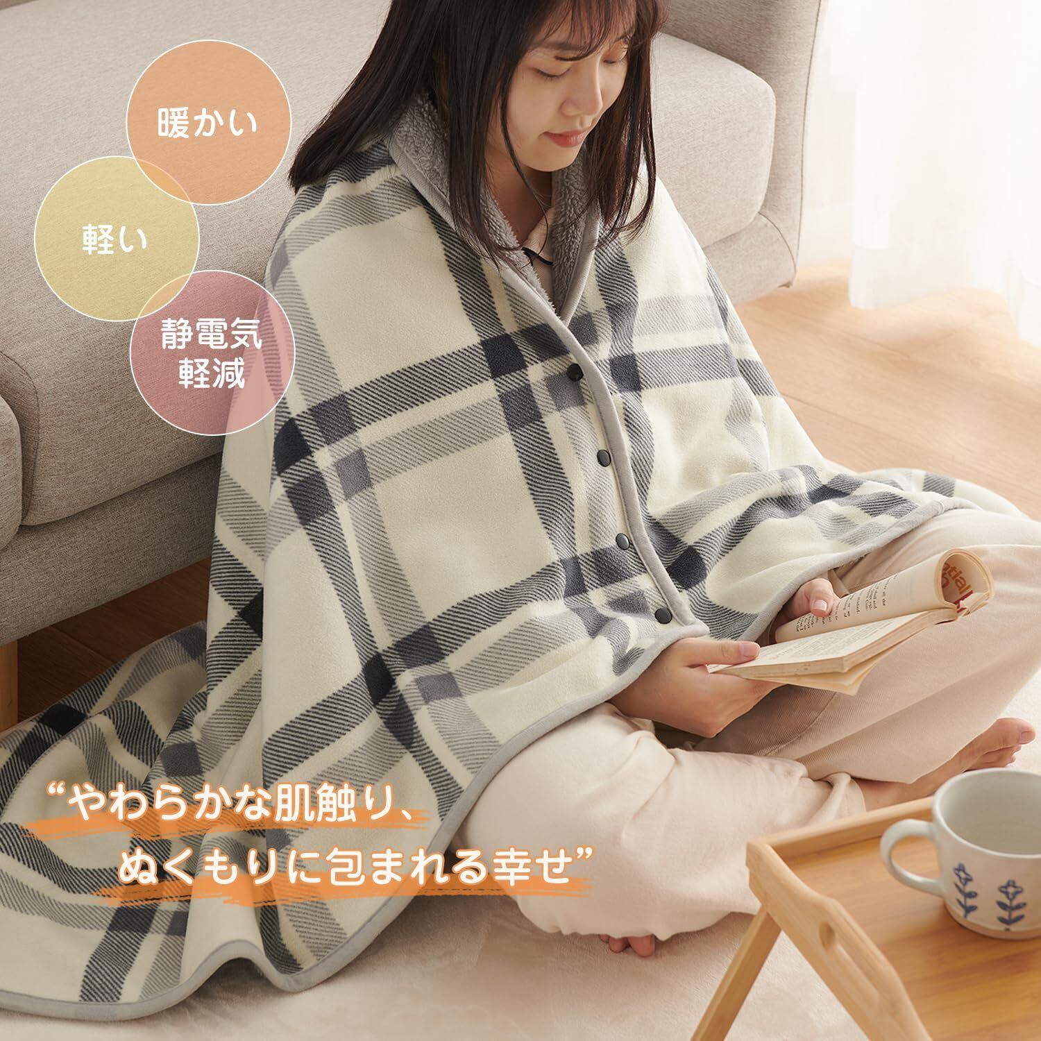 Atokazo ひざ掛け 4way ブランケット 着る毛布 ボタン付き あったか フランネル 吸湿発熱 防寒対策 静電気防止 洗える ハーフケット 肩掛け 膝掛け 腰巻きスカート 軽量 アウトドア オールシーズン(ホワイト,80X130cm)