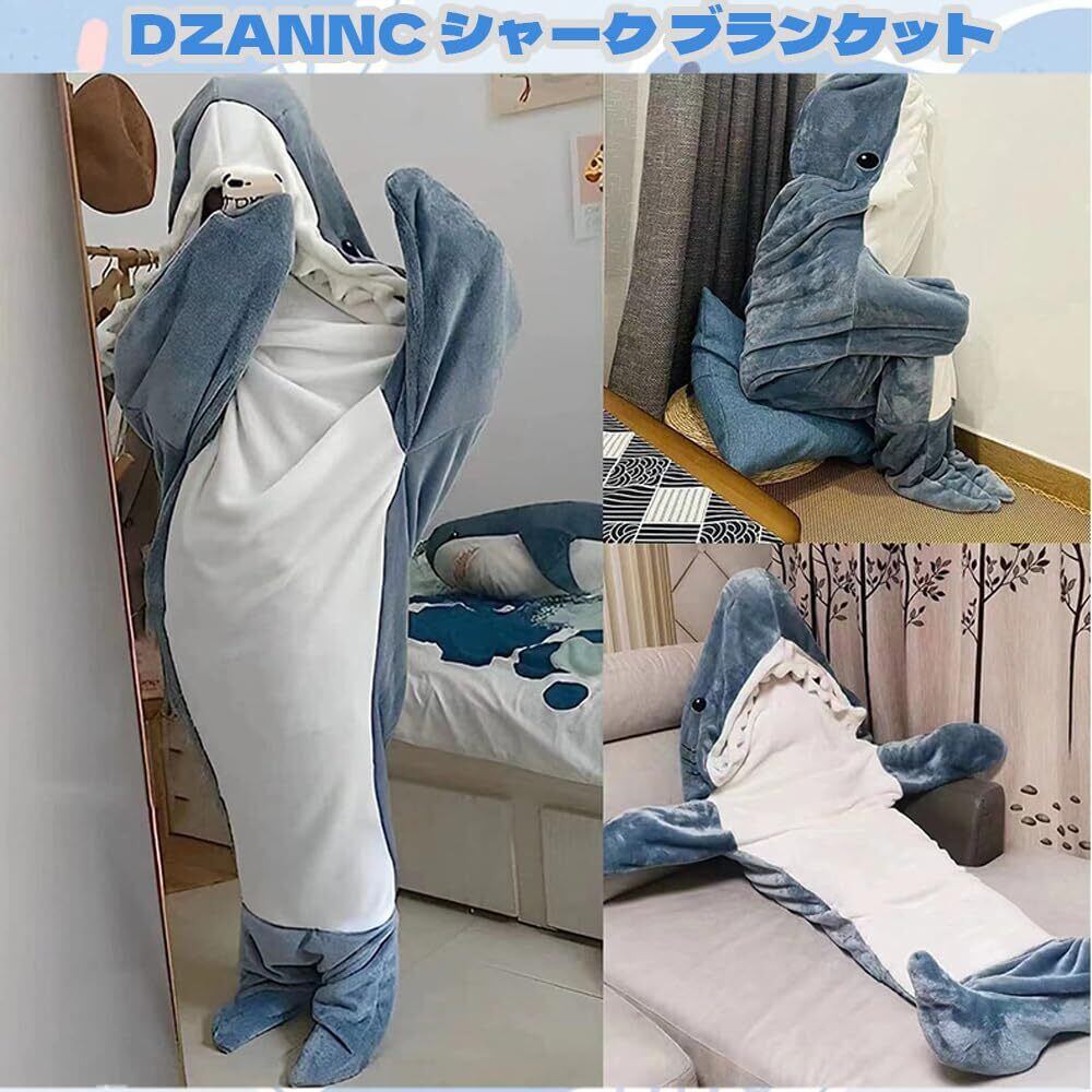 [Dzannc] 【限定ブランド】シャーク ブランケット サメ寝袋 サメブランケット大人用 着る毛布 サメ アニマルブランケット 寝袋 女性/大人用 ウェアラブルフランネルブランケット おしゃれ サメ パジャマ ふわふわ