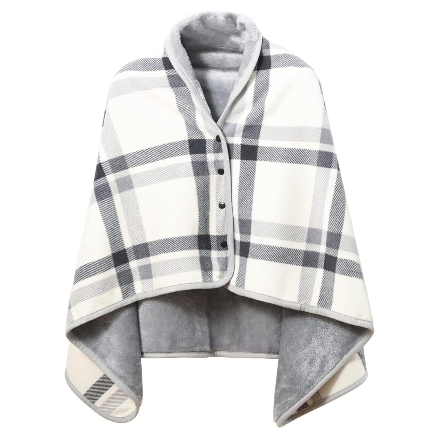 クモリ(Kumori) ひざ掛け 肩掛け 毛布 大判 ブランケット 4way 着る毛布 ボタン付き あったか 防寒対策 静電気防止 洗える 通年使用 (ホワイト 80X130cm)