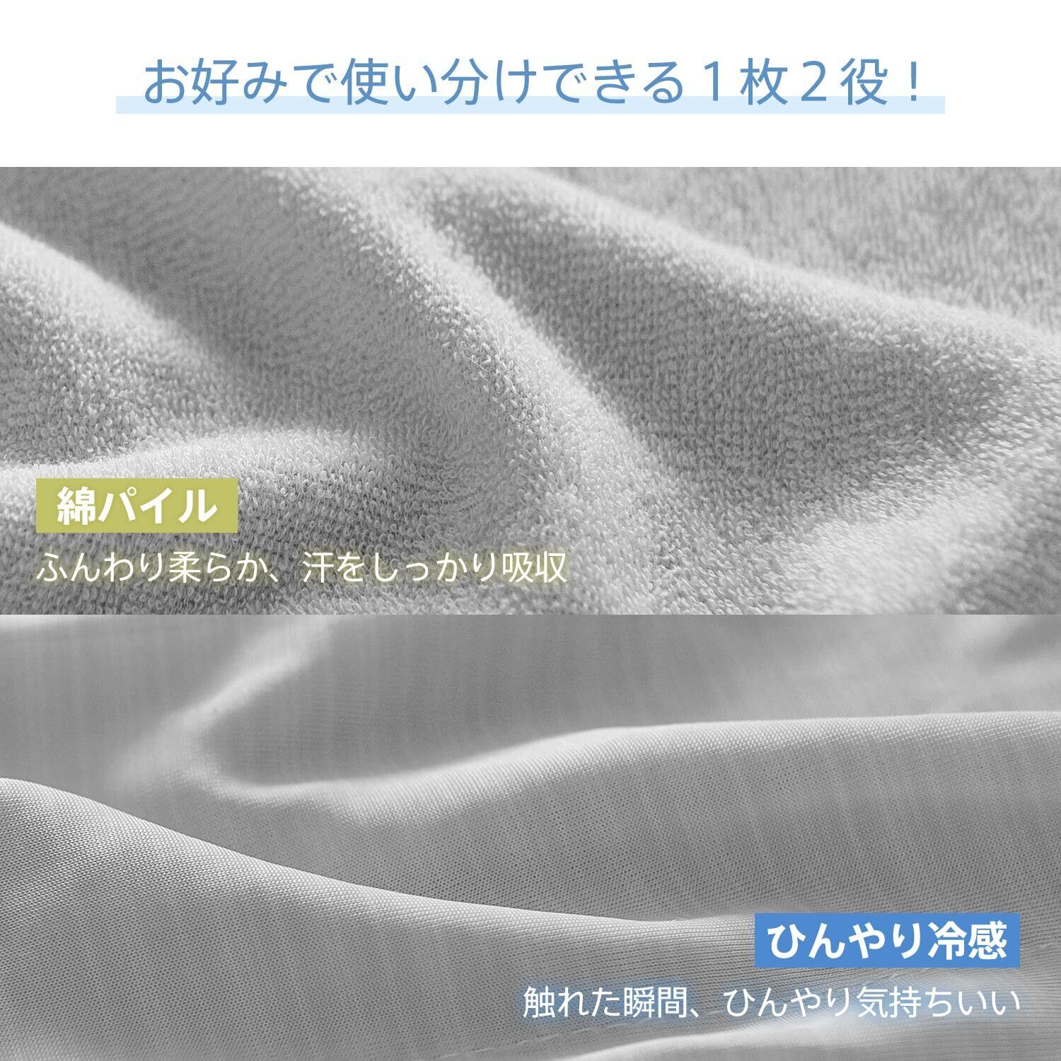 【夏から秋にかけて手放せない】季節に合わせて、リバーシブルの冷感面とタオル面を使い分けられます。寝苦しい夜・冷えすぎた時のどちらにも対応。1枚でお得感、春~夏~秋まで長いシーズン使えます。