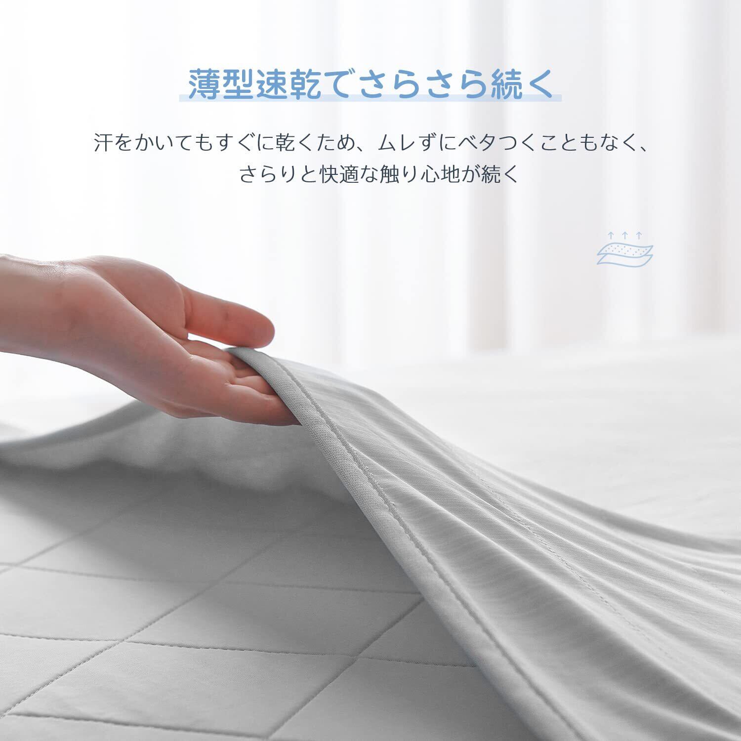 【汗や暑苦しさがこもらず】冷感面の生地はこもった熱を発散させて、タオル面の生地は不快な汗や湿気を吸収し、素早く乾きます。通気性がよいので、爽やかな睡眠環境を体験できます。