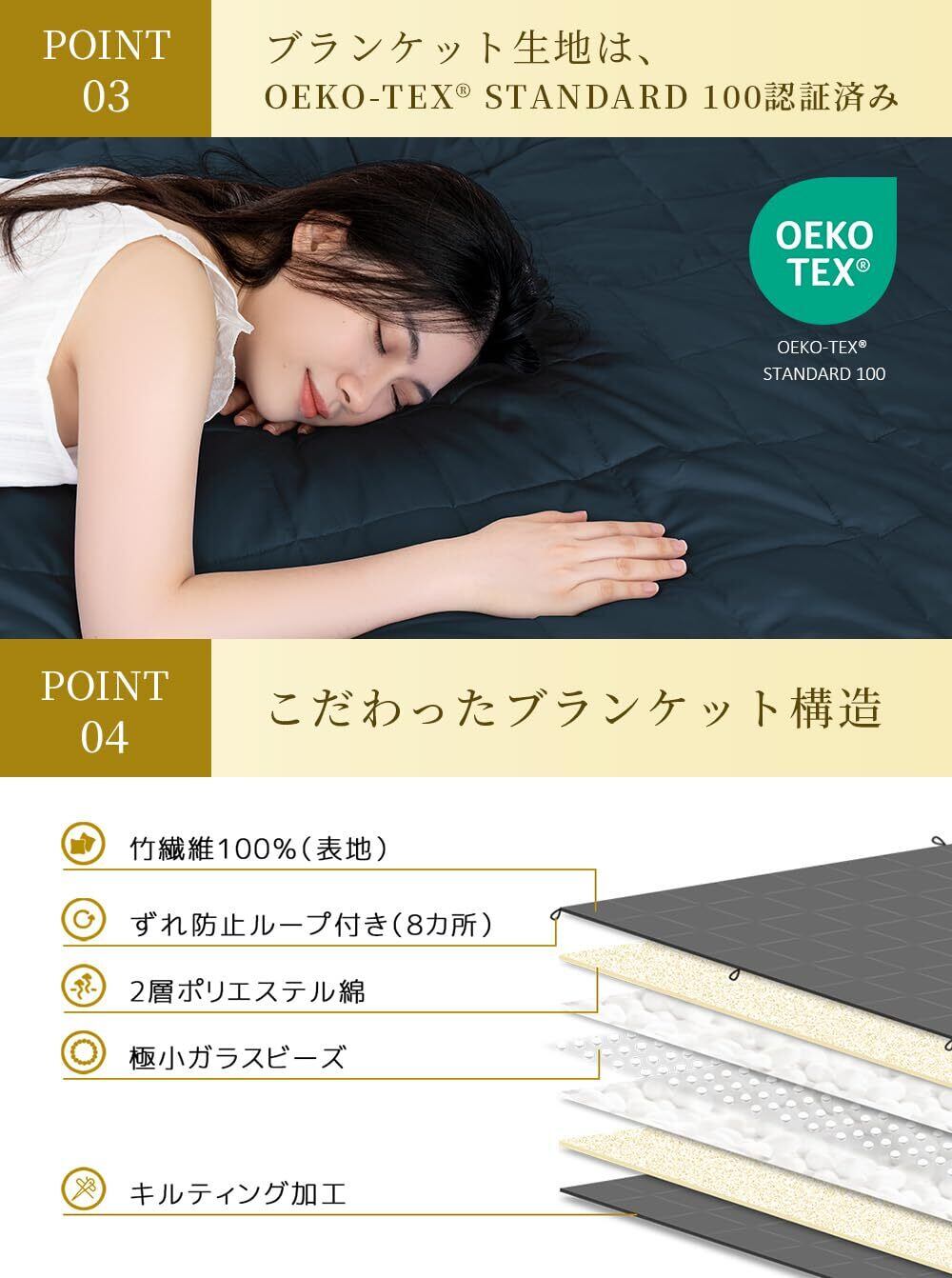 【素材】側地:竹繊維100%、中材:ガラスビーズ混合綿。ブランケットの中に充填しているガラスビーズは安全な無毒無臭ビーズであり、ハグされている感覚を再現してくれます。ガラスビーズをよらないようにするため、少量のポリエステルわたも入れております。均等かつ一定させる働きをしてくれます。(洗濯機不可、手洗いができる)