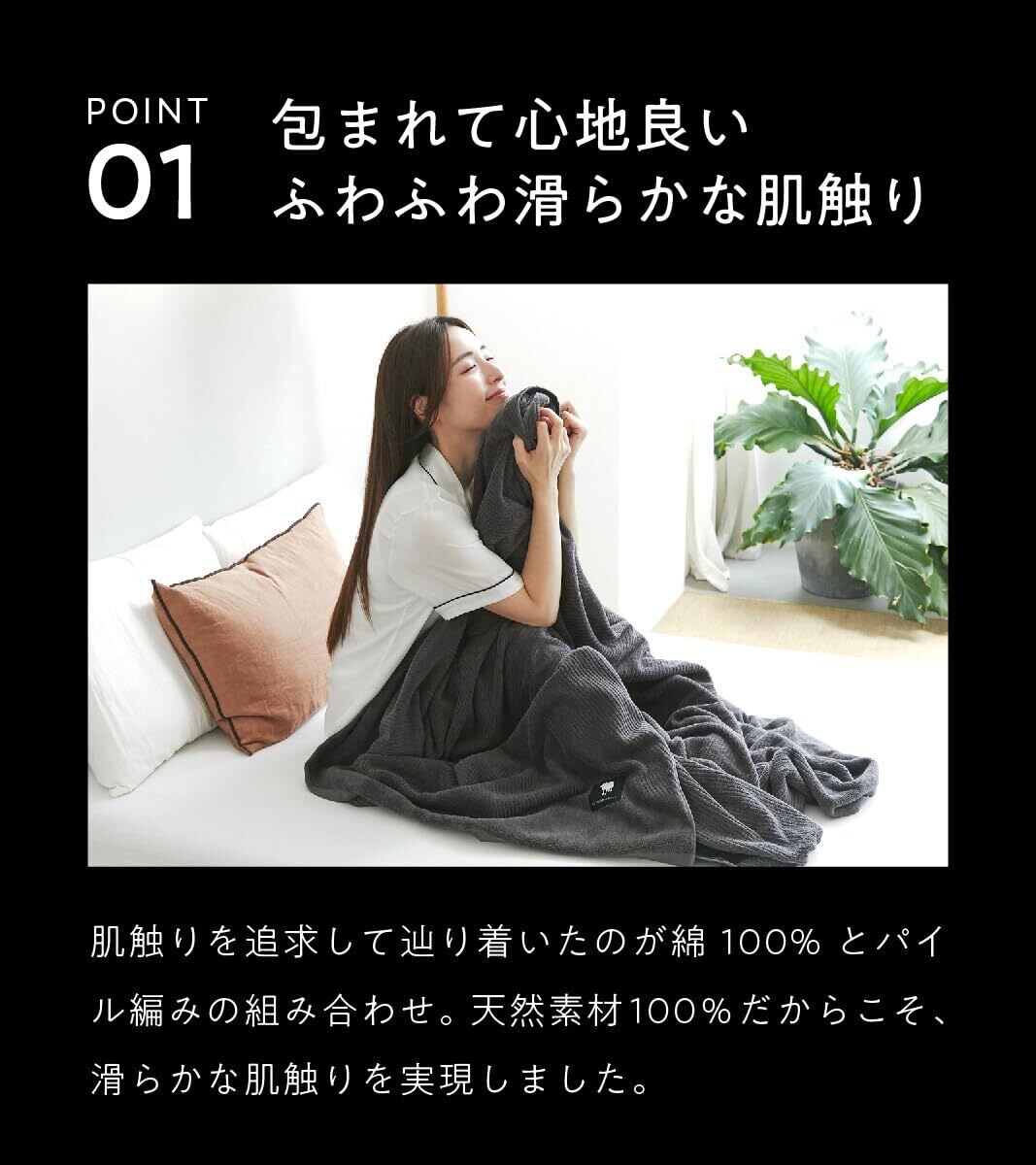 【極ふわで気持ちい肌触り】 タオルケット は綿100%使用!さらにループ上に編み込む「パイル編み」によりふわっふわの気持ちいい肌触りを実現!