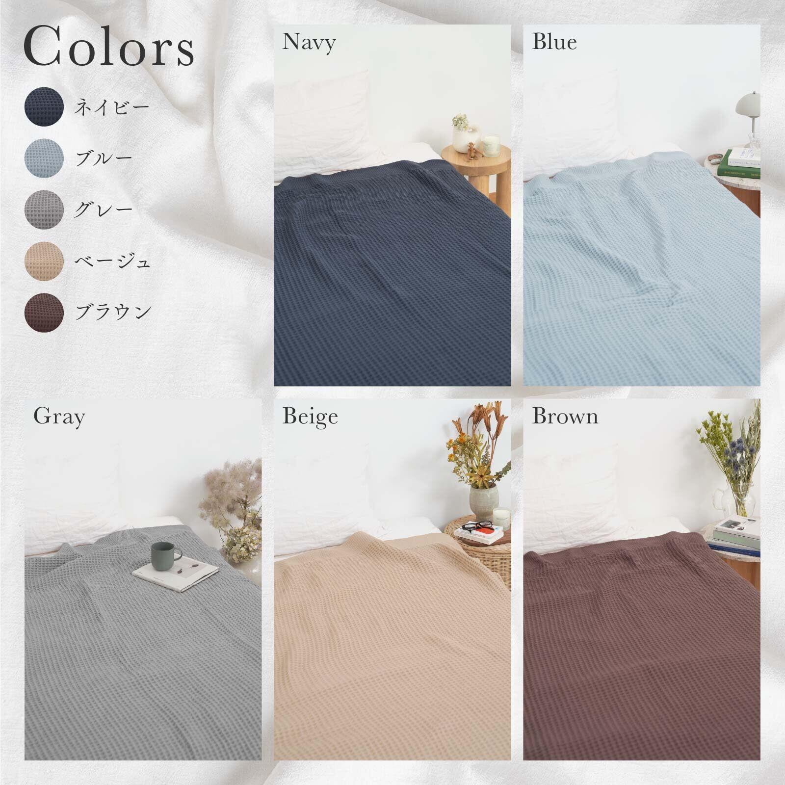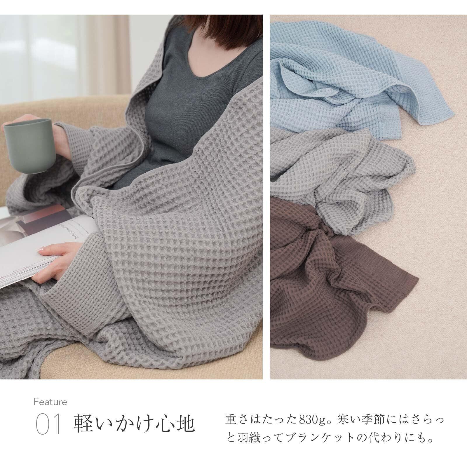 【綿100%の心地よさ】 ワッフル織りで肌に触れる面積が少なく、ざっくりと軽い掛け心地です。コットンの吸湿性・通気性で湿気の多い夏の夜や、汗をかく日のお昼寝でも快適に過ごせます。