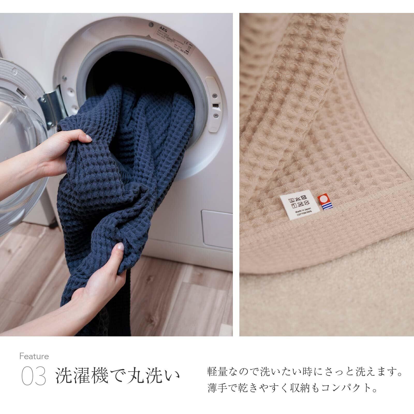 hogu 今治タオル ワッフルケット シングル ネイビー 140×190cm 綿100 日本製 軽量