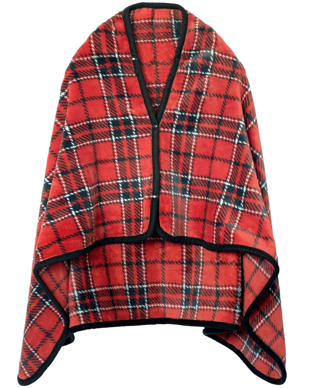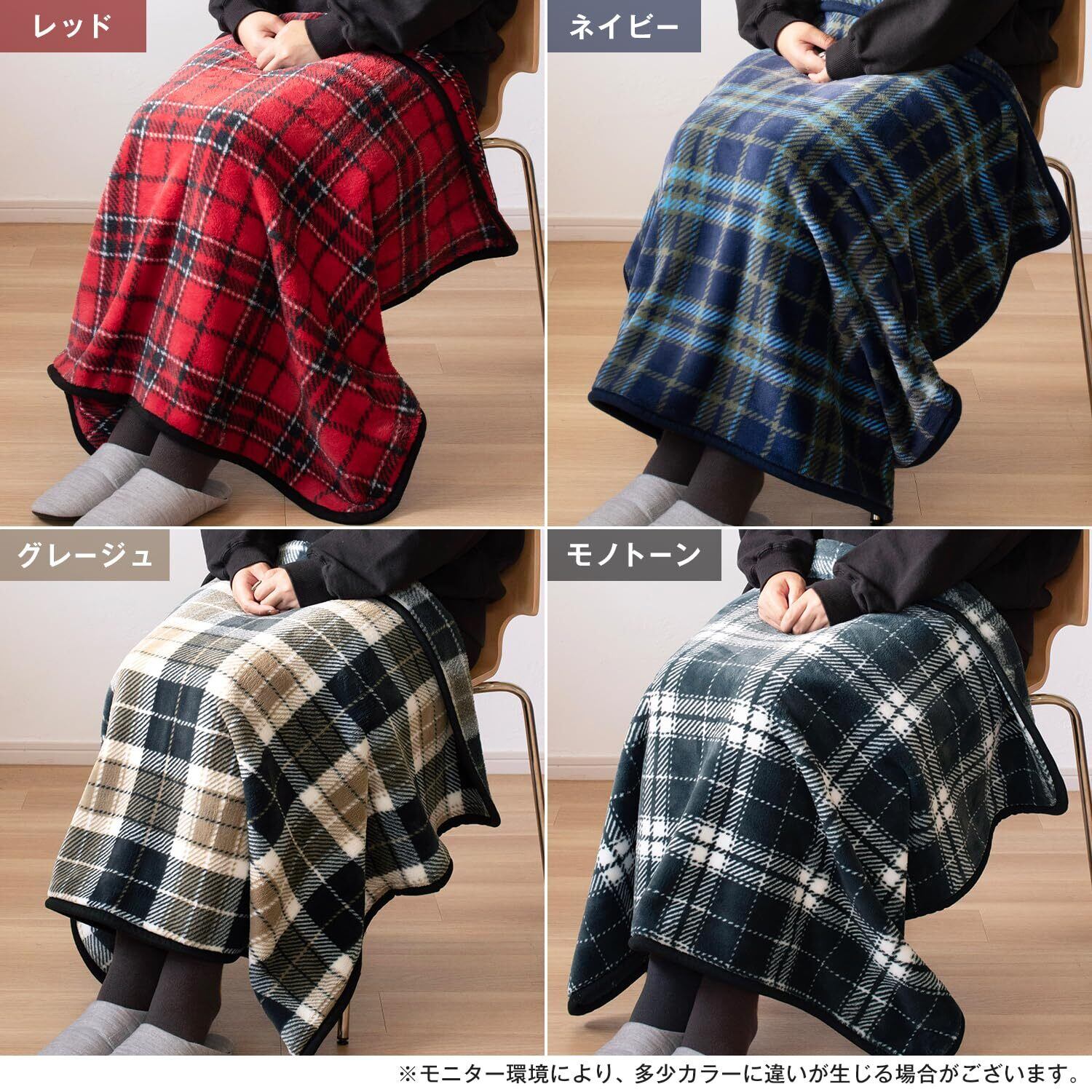 ブルーム ひざ掛け ミルクマイヤー ブランケット 約80×135cm チェック柄 3way かわいい 暖かい 洗える 大きめ 大判 膝掛け 肩掛け ひざかけブランケット Lサイズ (レッド)