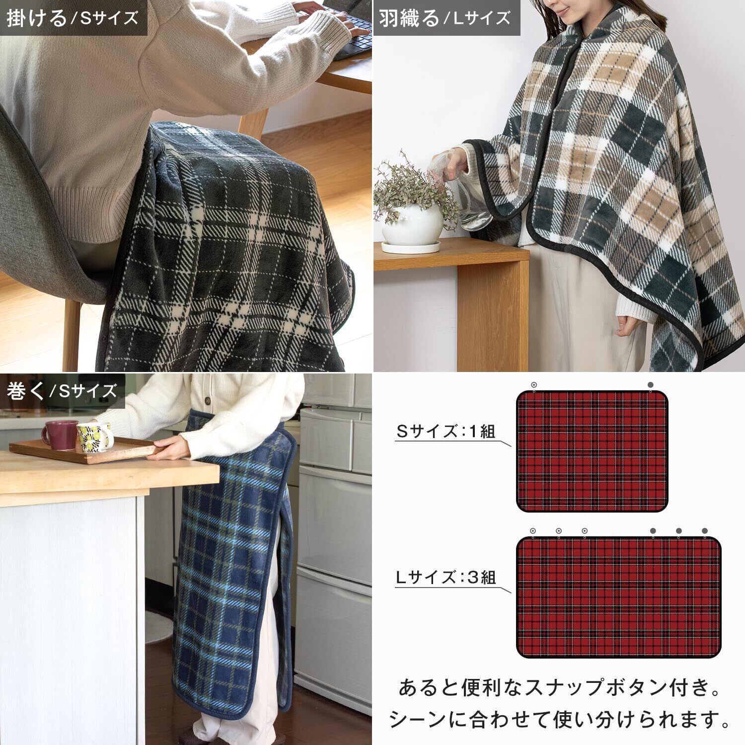 寒い季節や冷房の効いた室内で活躍する、スナップボタン付きひざ掛け。