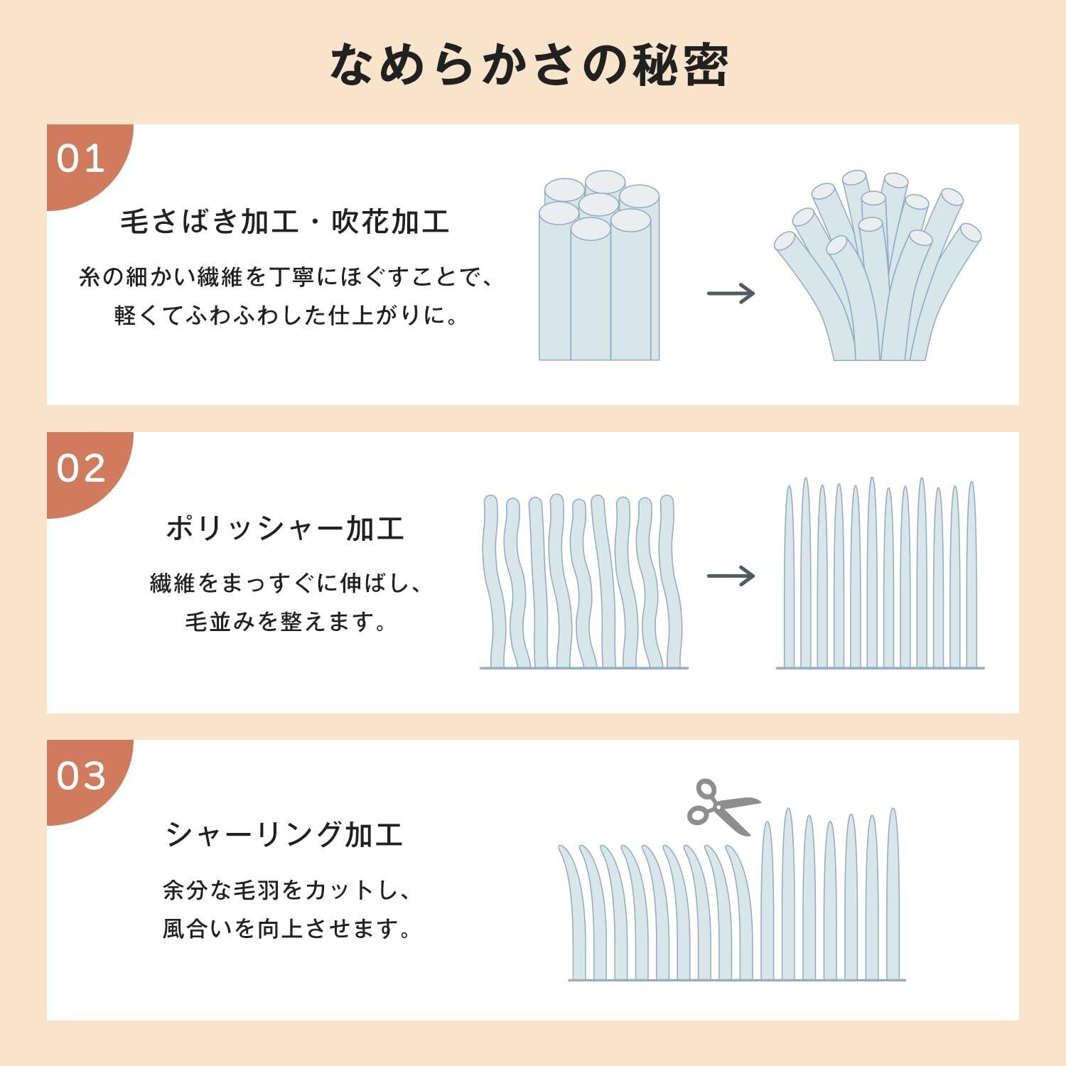 【触りたくなる肌ざわり】生地に特別な加工を施した「ミルクマイヤー」のブランケット。ずっと触っていたくなるような肌ざわりに仕上げました。
