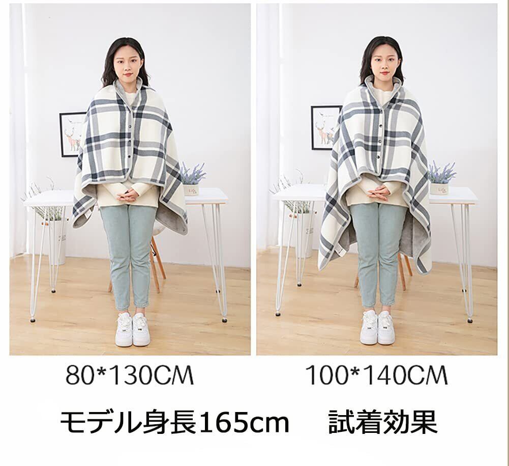 [LeafIn] ひざ掛け ブランケット ハーフケット 大判 4way 着る毛布 肩掛け ボタン付き 厚手 防寒対策 あったか チェック柄 おしゃれ 吸湿保温 抗菌加工 静電気防止 洗濯可能 手触り 暖かい