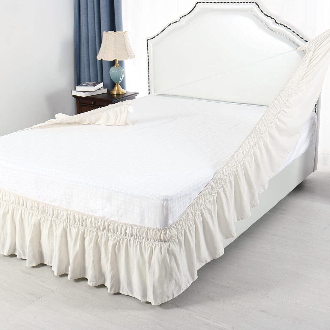 uxcell ベッドスカート ポリエステル 無地 北欧 贅沢 プリーツ かわいい 取り付け簡単 エレガント ベッド装飾 ベッドカバー フリル 姫系 軽量 ベージュ 100*190cm