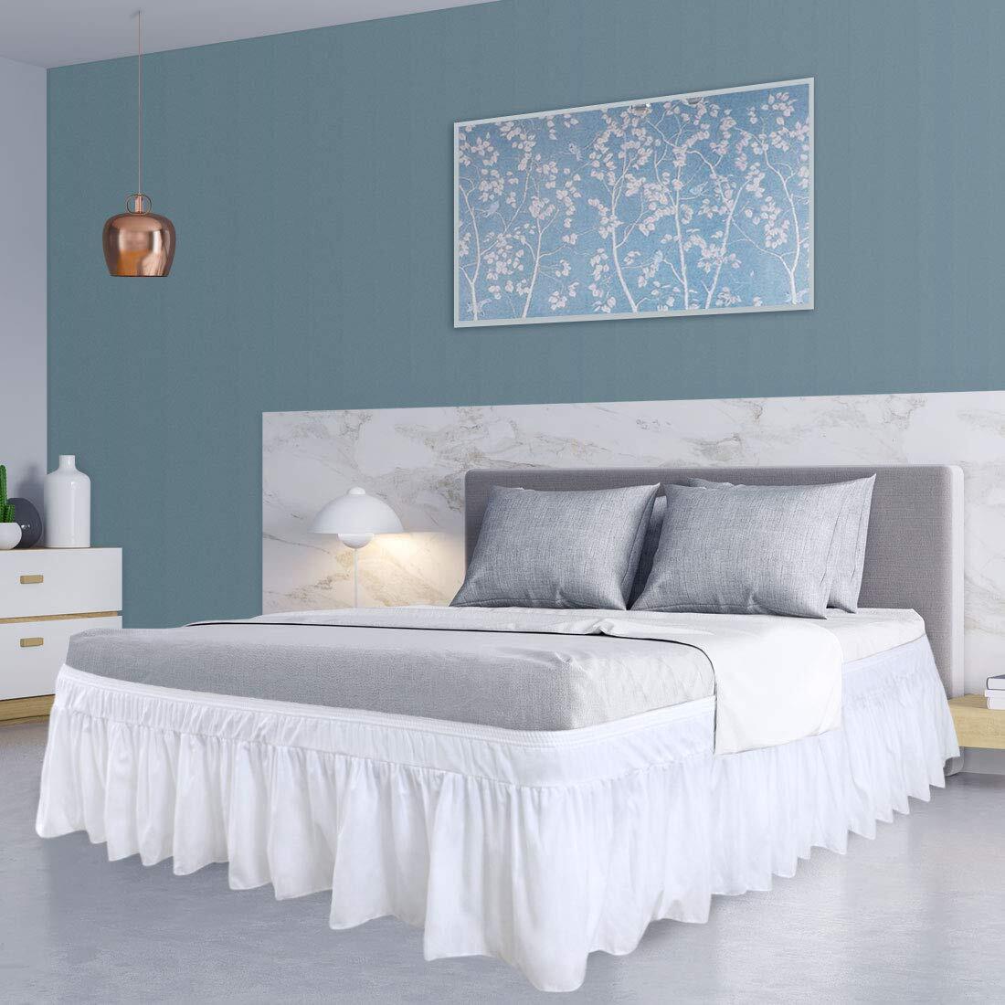 PiccoCasa ベッドスカート ポリエステル 無地 北欧 プリーツ かわいい 取り付け簡単 ベッドカバー フリル 姫系 軽量 スカート丈40 cm ホワイト 200*200cm