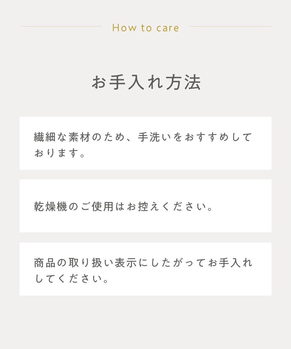 【ご自宅でお洗濯可能】汗をかいても、汚れてもすぐにお手入れ可能です。繊細な素材のため、手洗いをおすすめしております。また乾燥機の使用はお控えください。
