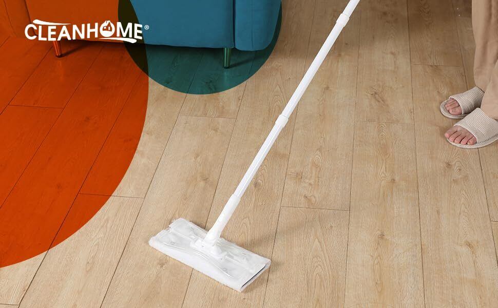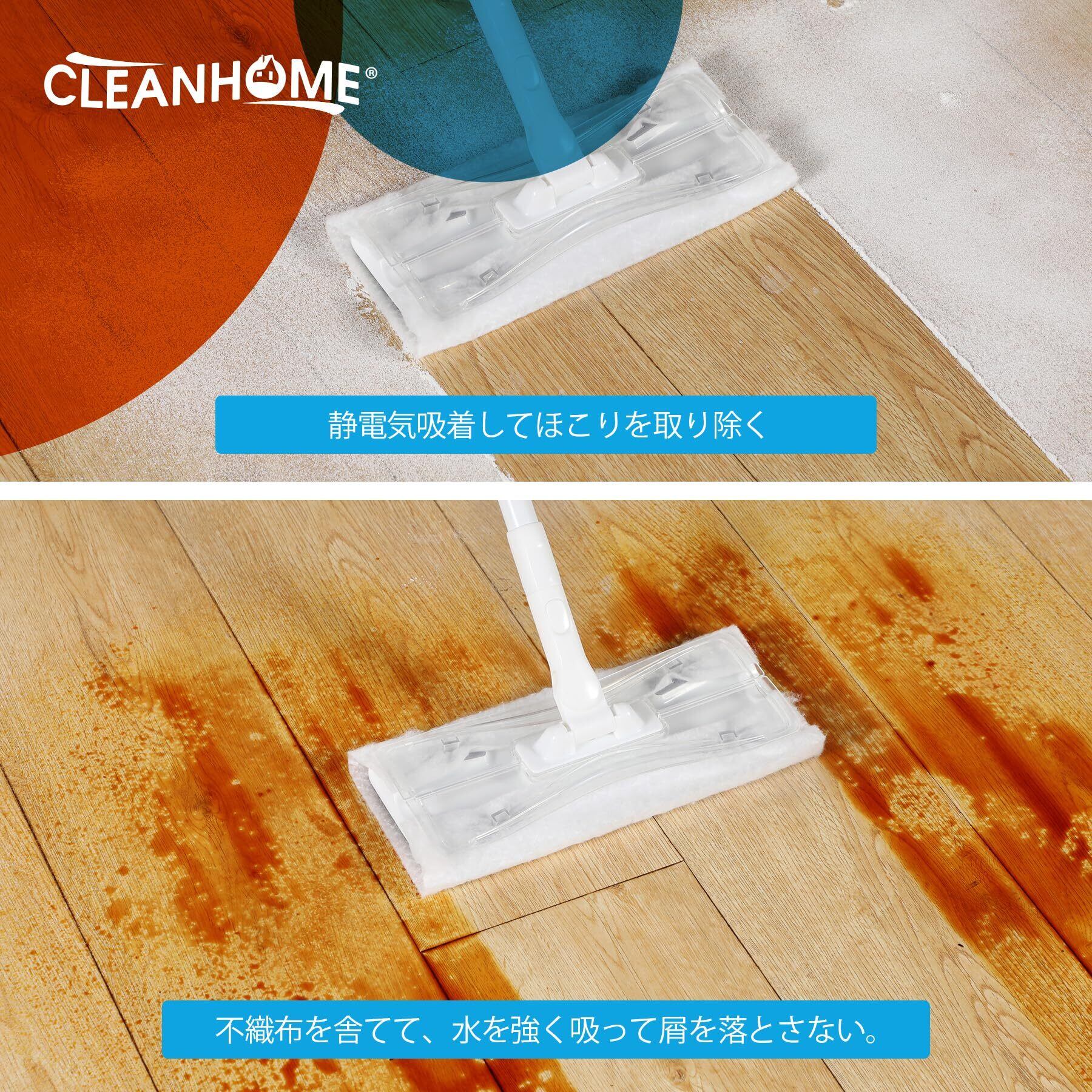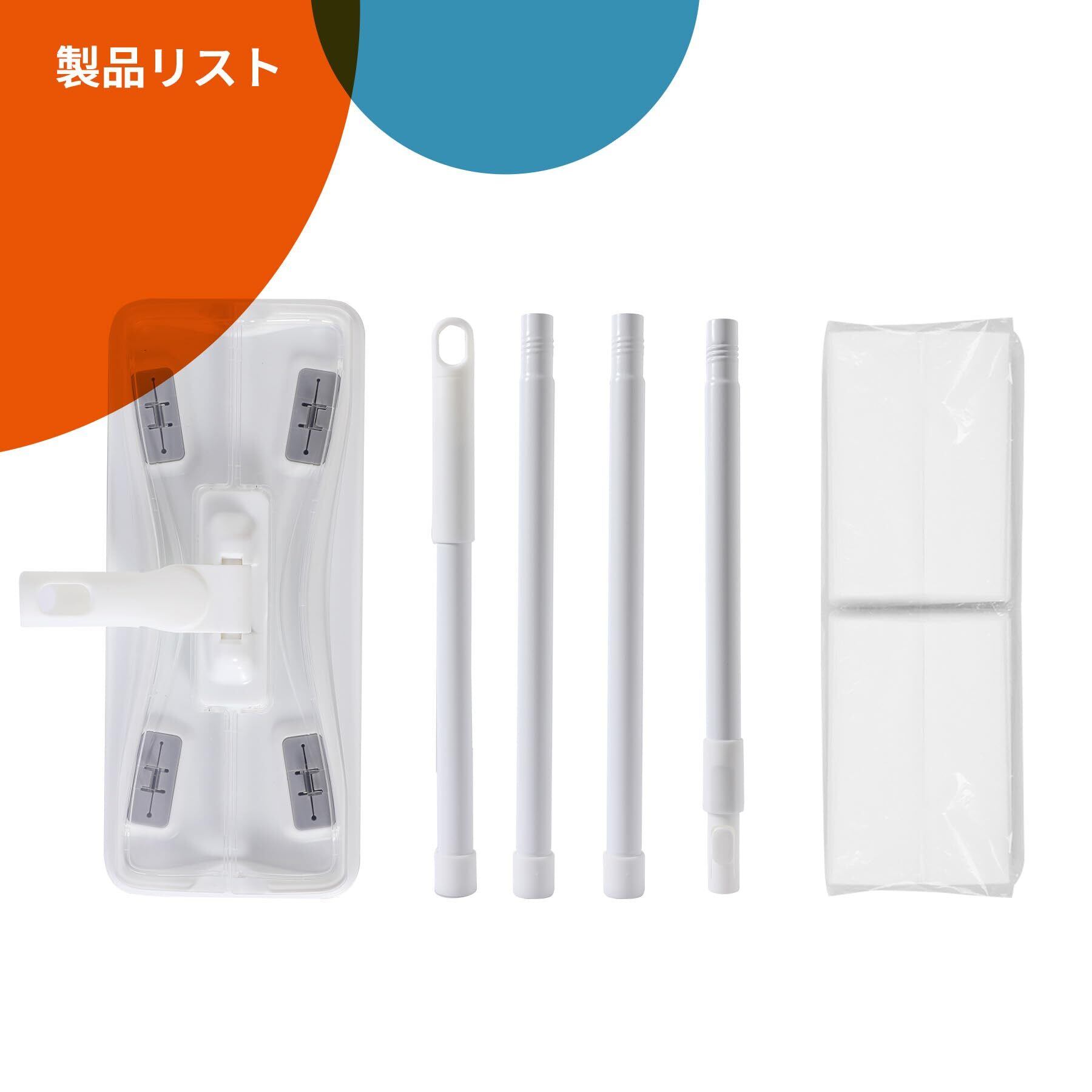 CLEANHOME フロアワイパー 本体 フローリングワイパー フロアモップ 拭き掃除 4段ポール 長さ調節 40cm-120cm 雑巾ワイパー 水拭きモップ 乾湿両用 ベランダ 玄関 床 窓 フロア 掃除道具 ドライシート10枚入 (ホワイト)