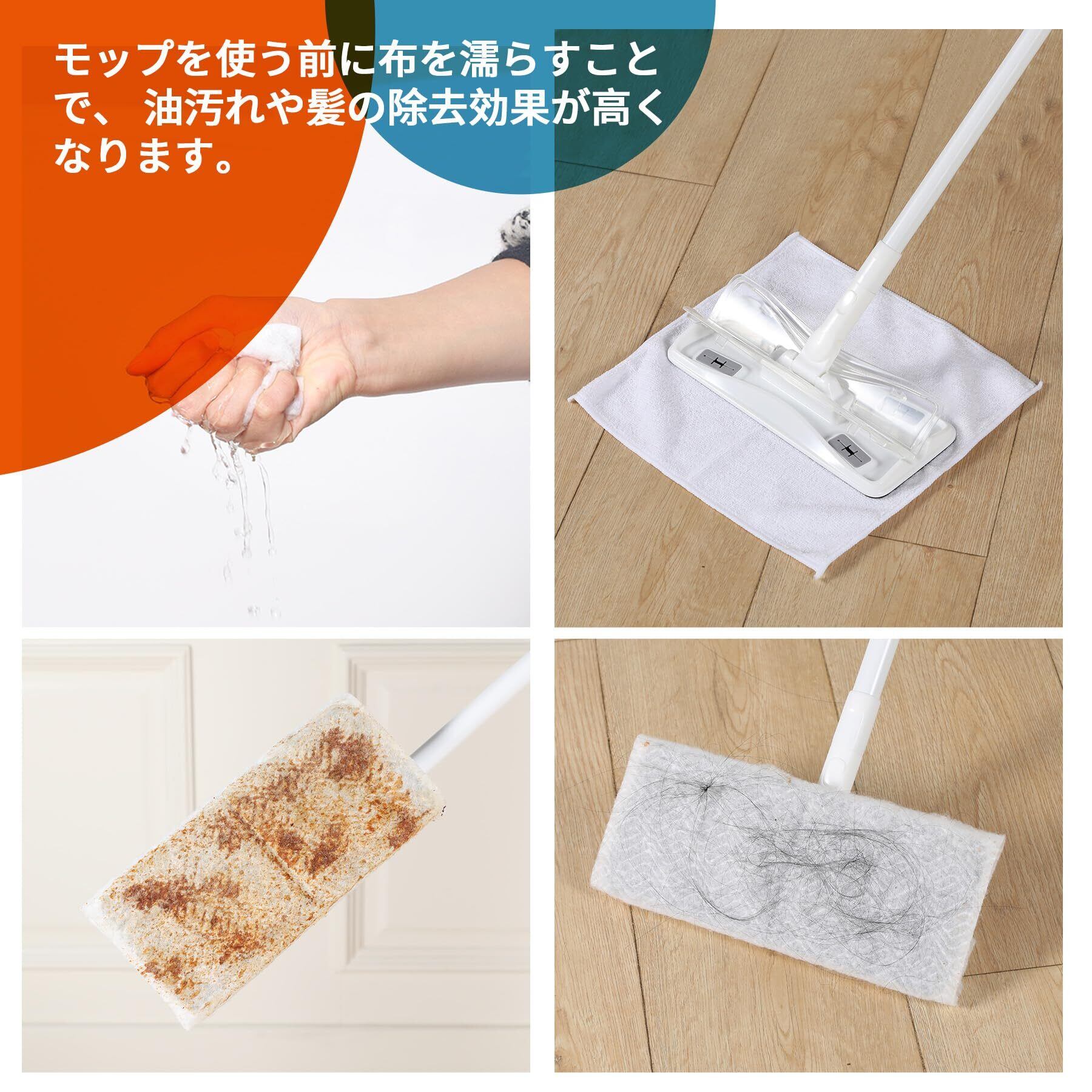 【使いやすい雑巾ワイパー】:モップのヘッドは360度回転できるので、使いやすいです。シート部分は髪の毛、ホコリが取り込みやすい、10枚入。