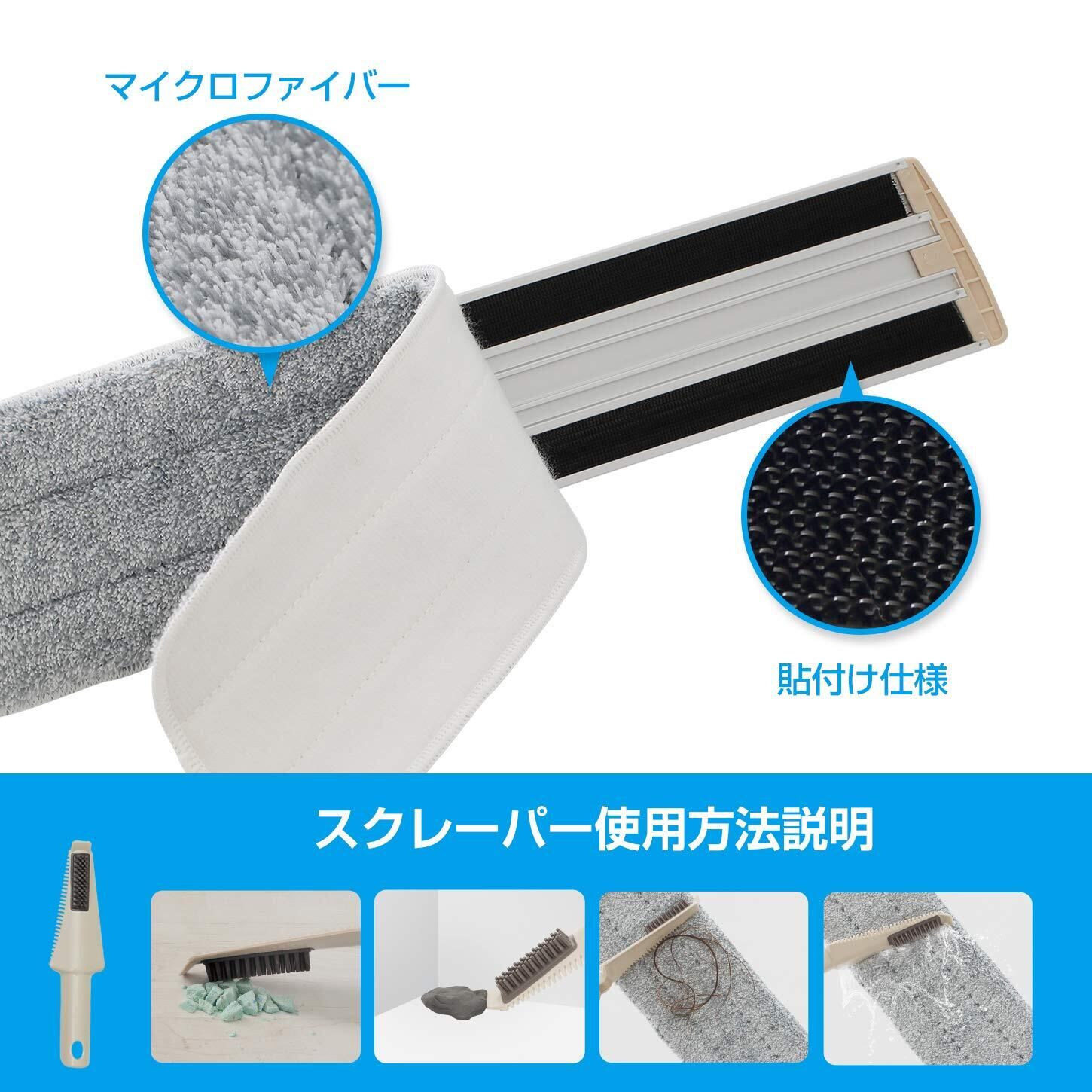 【材質】:クロスにはマイクロファイバーの極細繊維を採用され、吸水性や耐摩耗性等にも優れていて床や壁に優しいし、特に木製の床面を傷つけず掃除できるだけではなく、手洗いや洗濯機洗いも可能であり、もっと便利です。