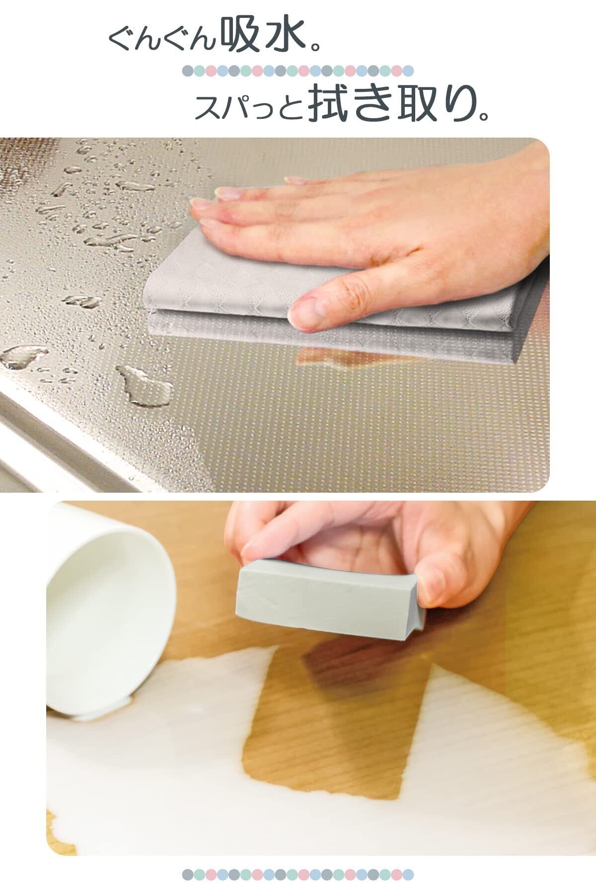 飛び散った水滴も、こぼした飲み物も、軽く触れるだけでグングン吸い取ります。