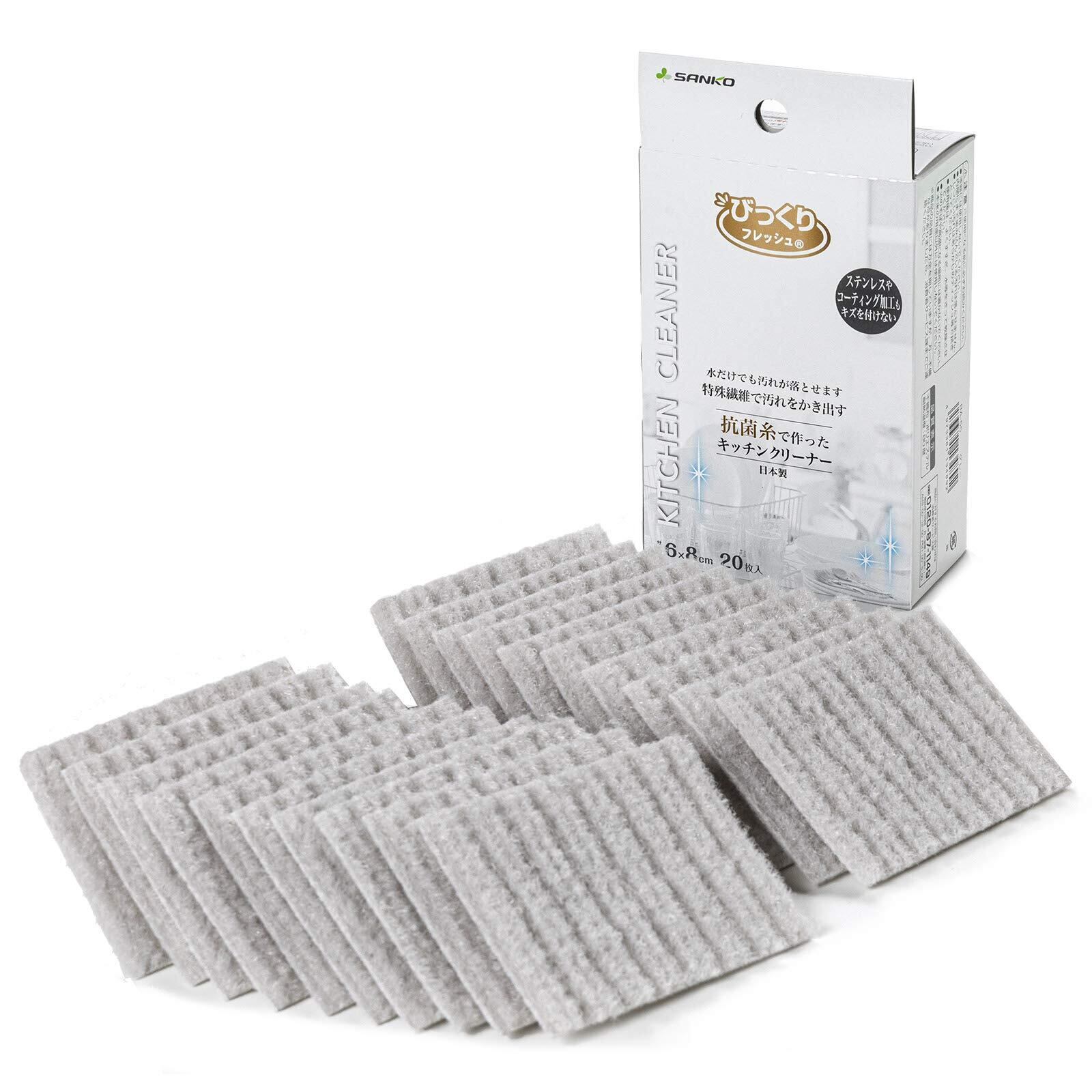 抗菌糸で作ったキッチンクリーナー20枚入りです。シンク、レンジまわり、食器・鍋など、水だけでも汚れが落とすことができます。
