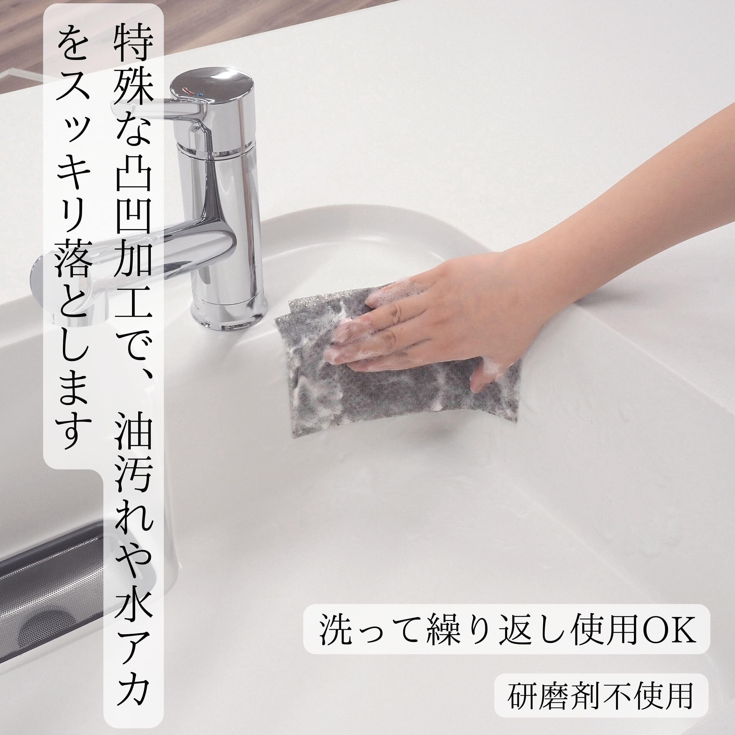 ●研磨材は使用せず、特殊な凸凹加工で、水アカや油汚れなどをスッキリ落とします