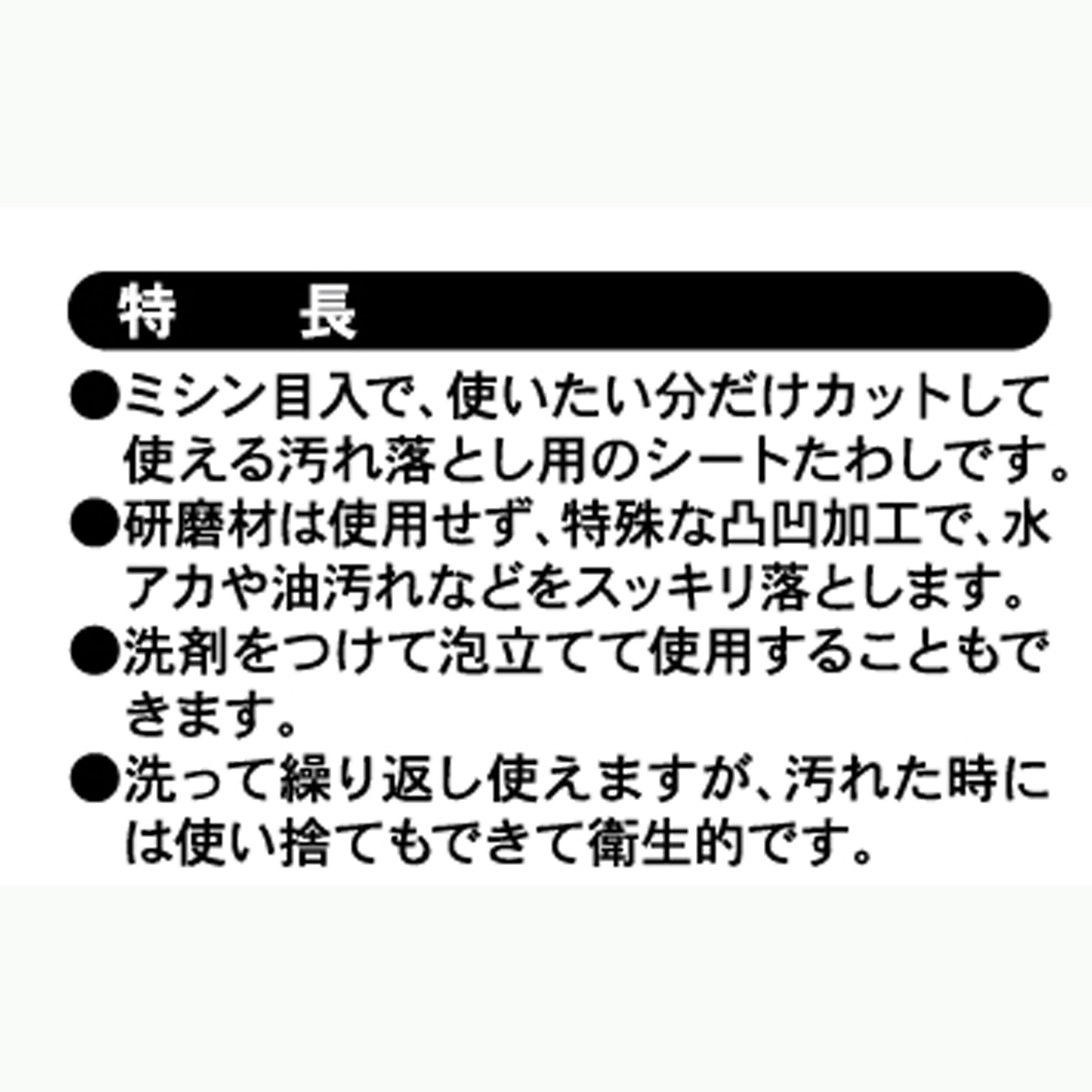 ●ミシン目入で、使いたい分だけカットして使える汚れ落とし用のシートたわしです