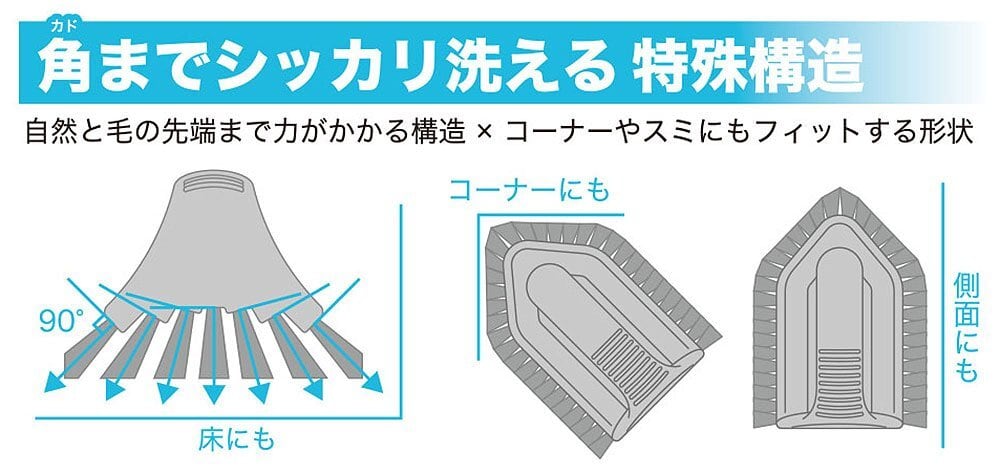 自然と毛の先端まで力がかかる構造×コーナーやスミにもフィットする形状