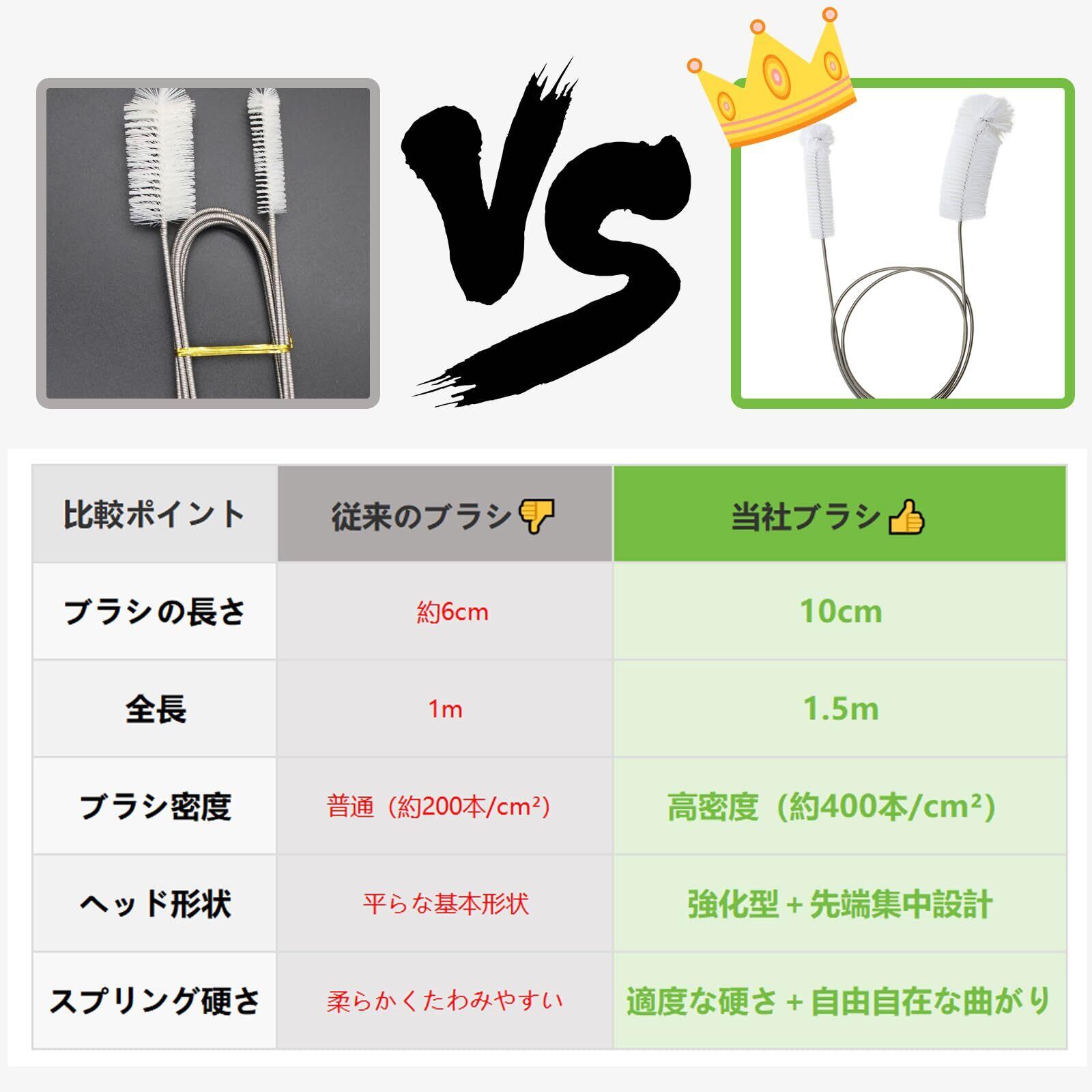 『1.5m超ロング設計』 - 手が届かない排水管の奥までラクに届く1.5mの長さで、キッチンやお風呂場の深い排水口もストレスなく掃除できる便利な長さ