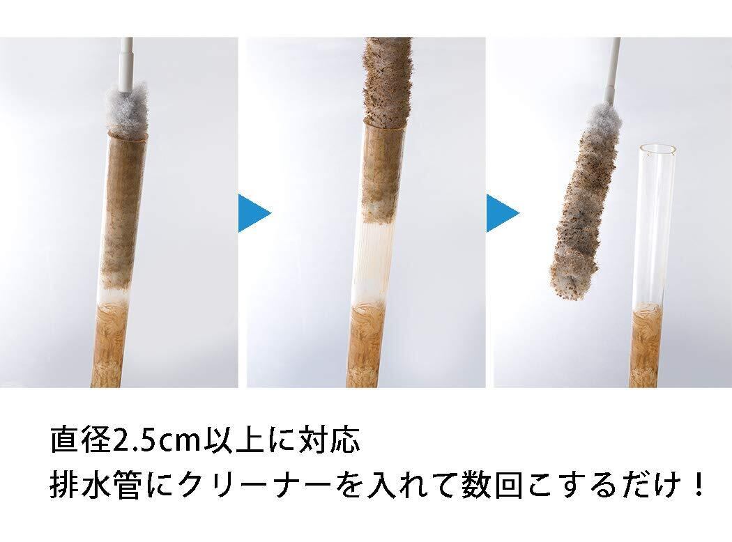 髪の毛や歯みがき粉でつまりやすい洗面所の排水管を水だけで掃除をすることができる排水管用クリーナー。