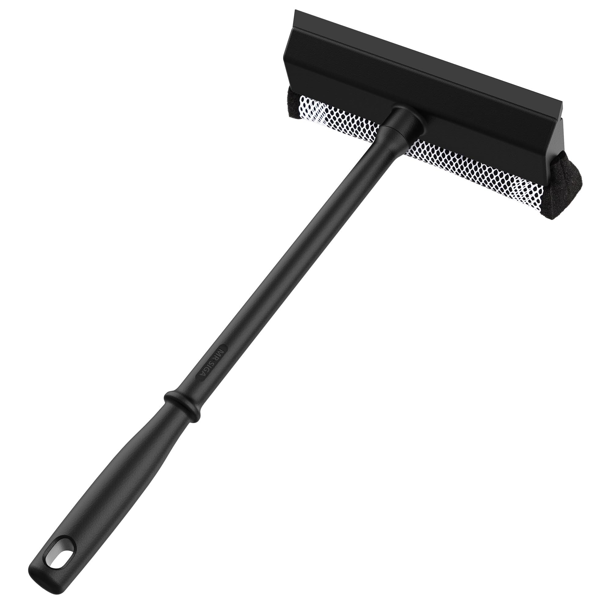 MR.SIGAプロな車用窓拭きスクイージー、浴室 ガラス 壁掃除用 ハンドル付き、2 in 1窓拭きスクイージー窓拭きスポンジ、ブラック