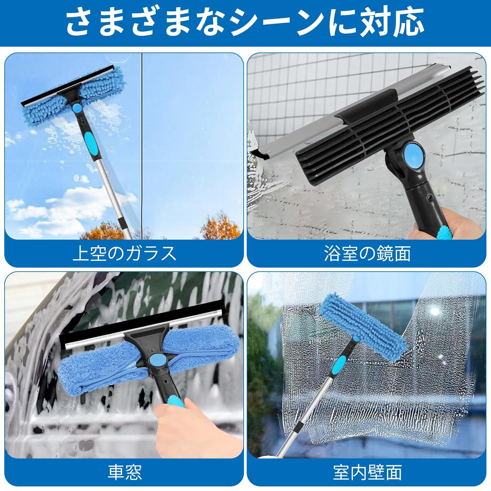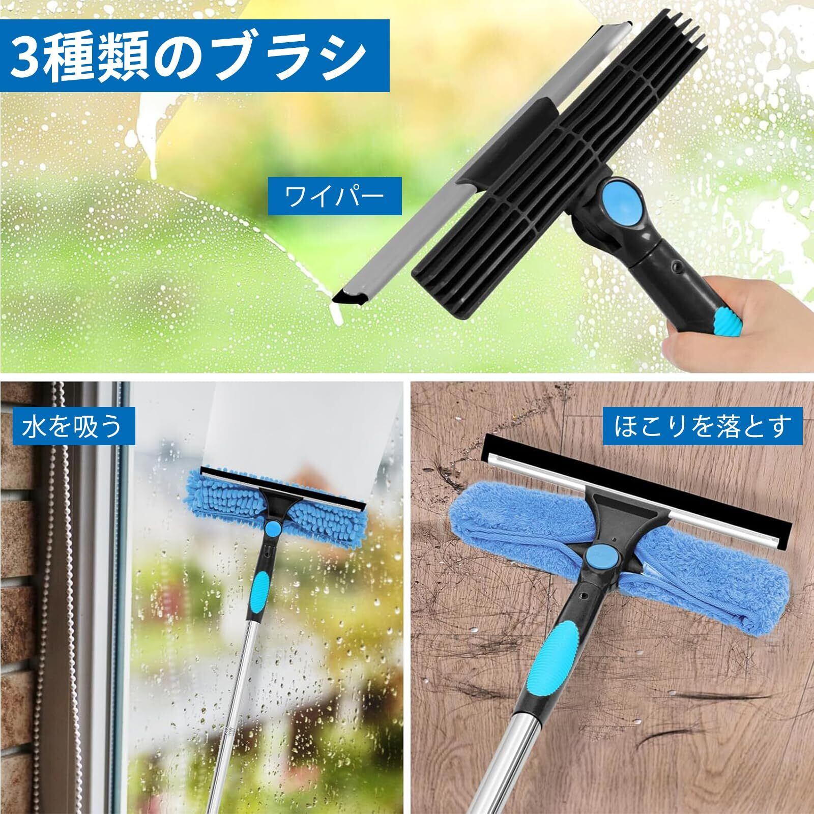 3in1 窓ガラス 掃除 10個 エクステンション 高所掃除ブラシ 窓掃除道具 長さ約4m 高所 窓掃除 水切りワイパー 窓掃除 ワイパー マイクロファイバー付き 伸縮可能 高所掃除 外壁 ガラス