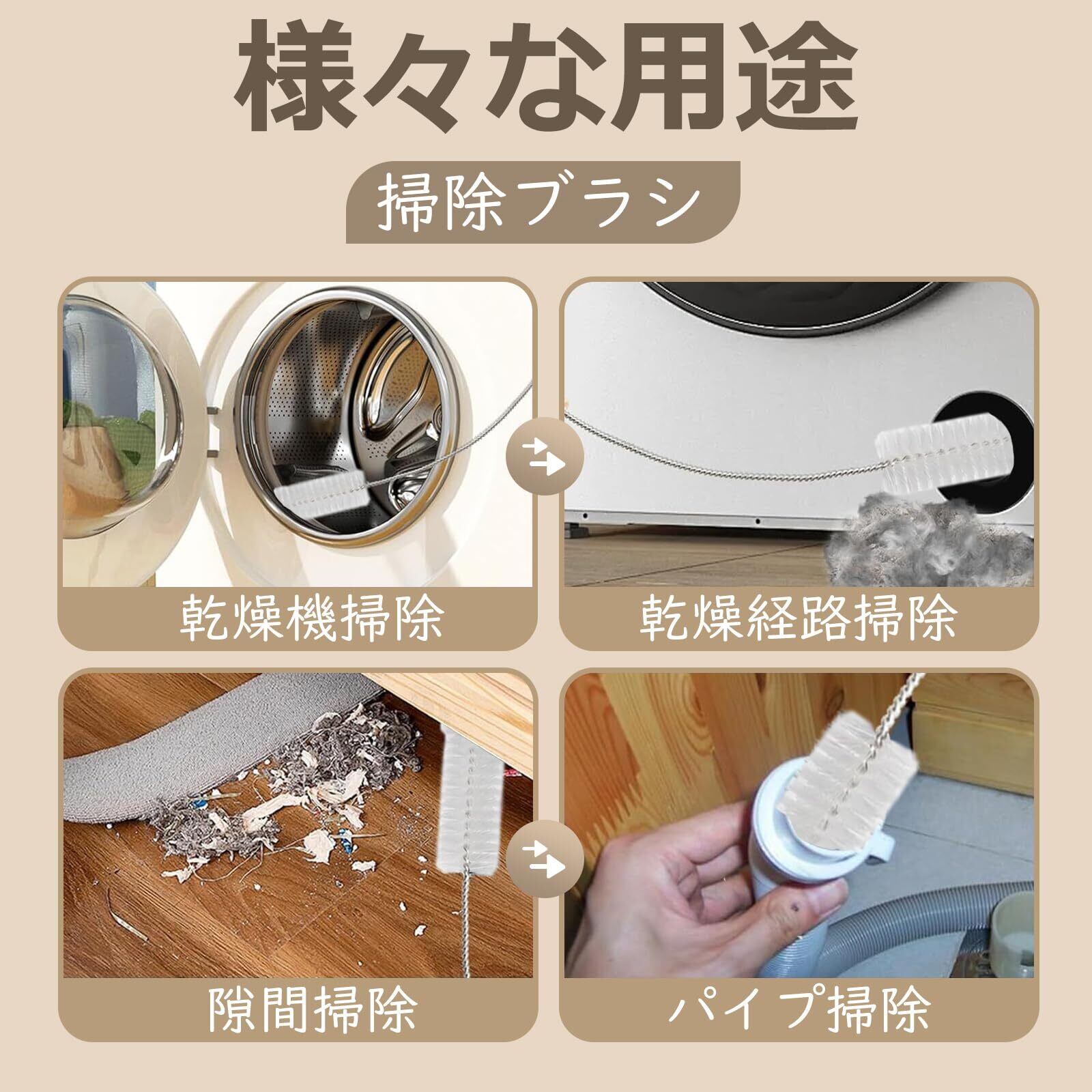 【一本で様々な用途】この洗濯機掃除ブラシは、乾燥経路、ドアワッシャー、綿フリースフィルター、乾燥フィルター、排水管など、さまざまな部品を清掃できます。掃除ブラシはとても便利なアイテムで、暖炉の清掃とメンテナンス製品として使用できます。また、洗濯機以外の届きにくい場所にも使用できます。