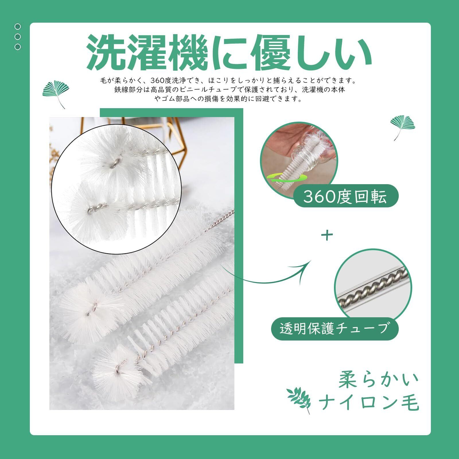 【洗濯機に優しい】掃除ブラシはステンレスと高品質のナイロンブラシで作られており、毛が柔らかく、360度洗浄でき、直径3センチ、長さ10センチで、ほこりをしっかりと捕らえることができ、洗濯機の傷や損傷を心配する必要はありません。鉄線部分は高品質のビニールチューブで保護されており、洗濯機の本体やゴム部品への損傷を効果的に回避でき、より安全で安心に使用できます。