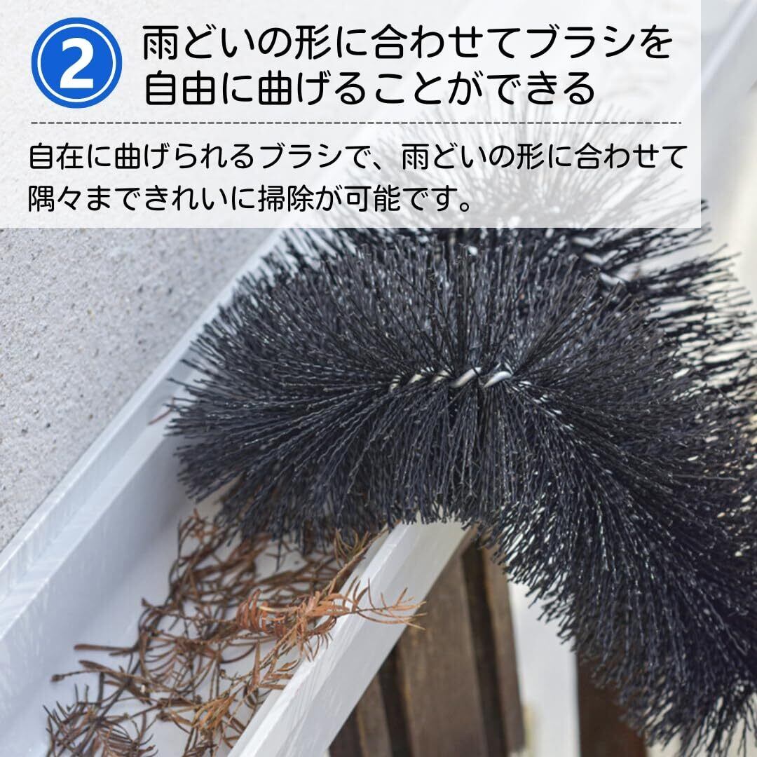 【自在に曲げられるブラシで、隅々まできれいに】 雨どいの形に合わせてブラシを自由に曲げることができるため、難しい箇所もしっかりと掃除できます。ブラシの柔軟性のおかげで隅々まできれいに仕上がります。
