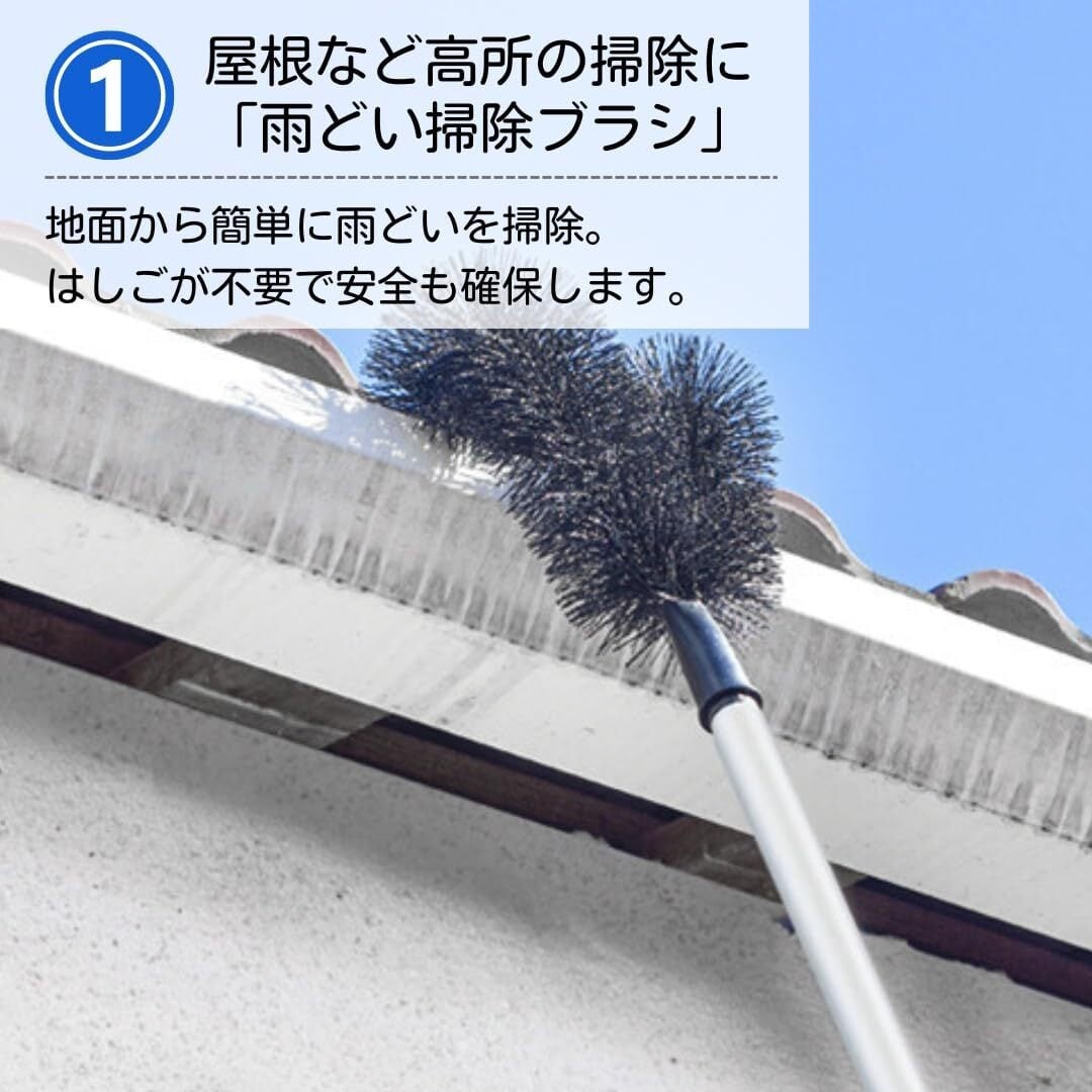【手軽に使える雨どい掃除ブラシ】 ポールを繋げるだけなので手軽に使用できます。使いやすさと機能性で雨どいをきれいに保ちます。