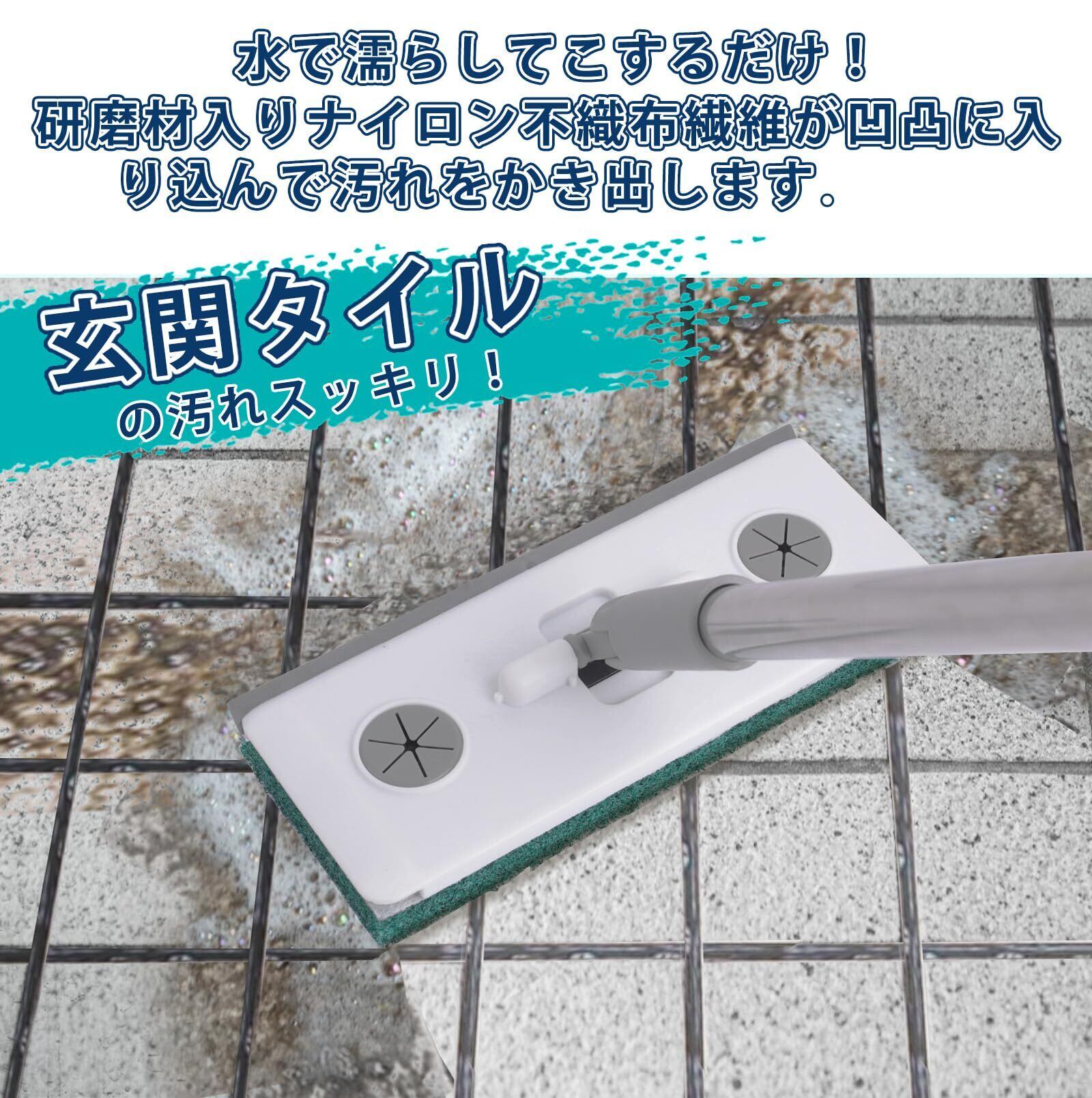 TeLIfe 玄関タイルブラシ 玄関 タイルブラシ フローリングワイパー 本体 1台4役 デッキブラシ スキージー付 お風呂掃除 ブラシ 浴室 ブラシ 床掃除 スペア交換可 替えモップパッド4枚 ベランダ掃除 窓掃除 お風呂場/床/窓/に適用 掃除用品