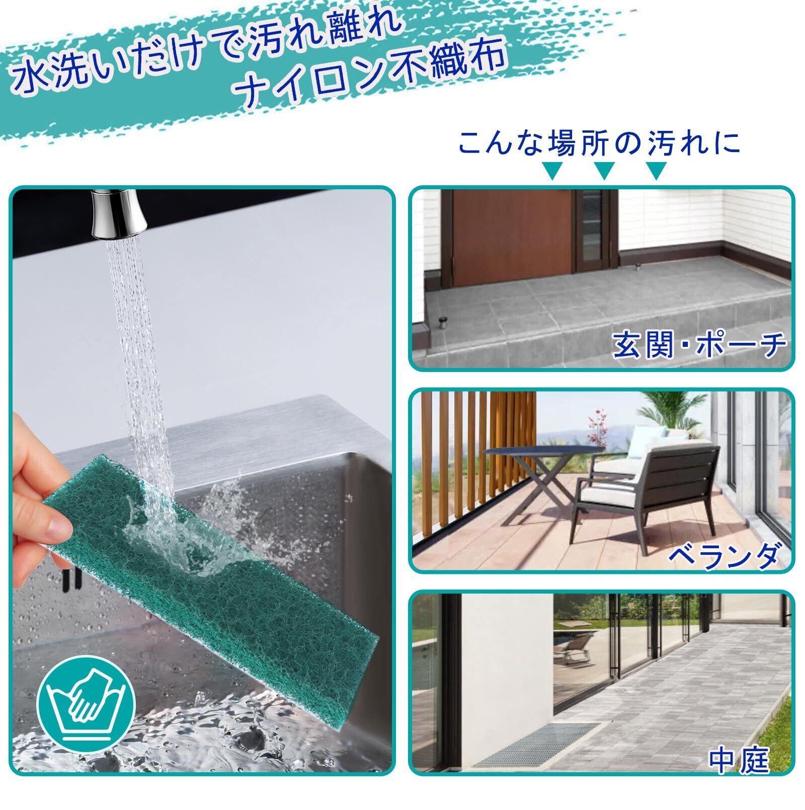 【水で濡らして汚れをスッキリ落とす】ナイロン不織布製のブラシスポンジに研磨粒子を塗布したので、タイルに付いたの固い汚れをスッキリ落とします。玄関、外壁、ベランダなどのお掃除に適用です。
