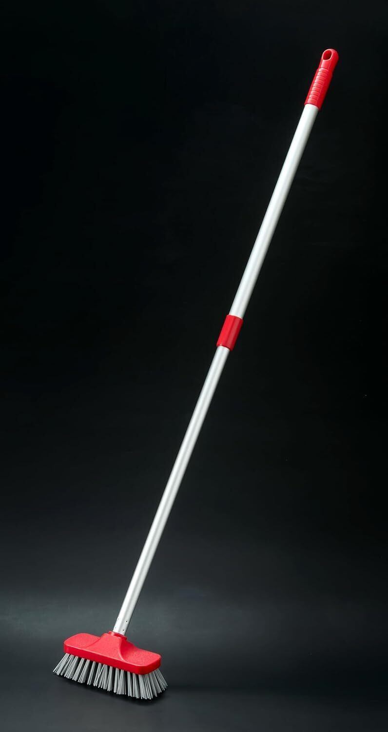 日本クリンテック(Nihon Clean tech) デッキブラシ 特殊繊維でしっかり擦れる 伸縮 コンパクト収納 頑丈 【X Shape PRO化繊デッキブラシ】 アルミ伸縮柄 レッド