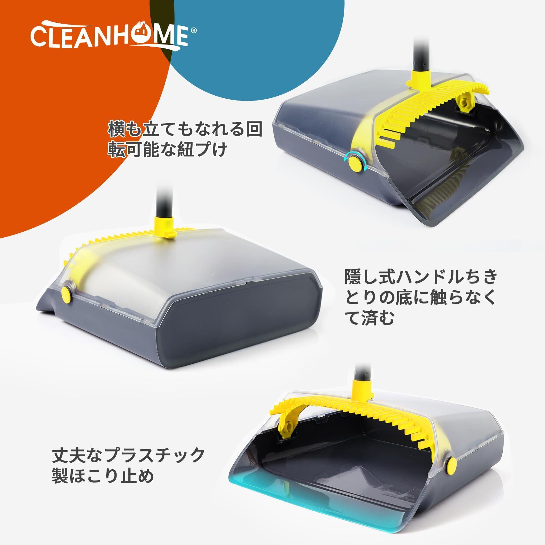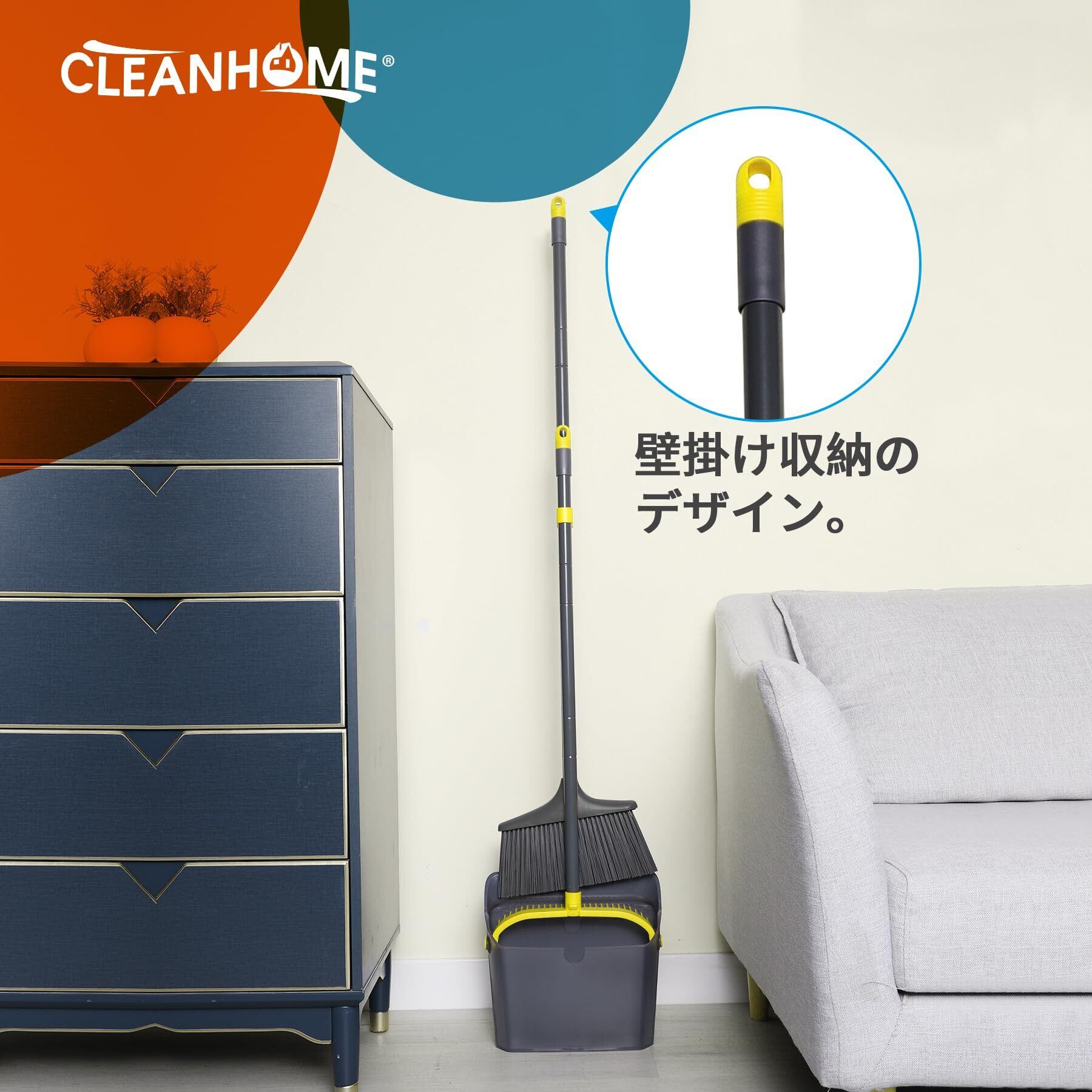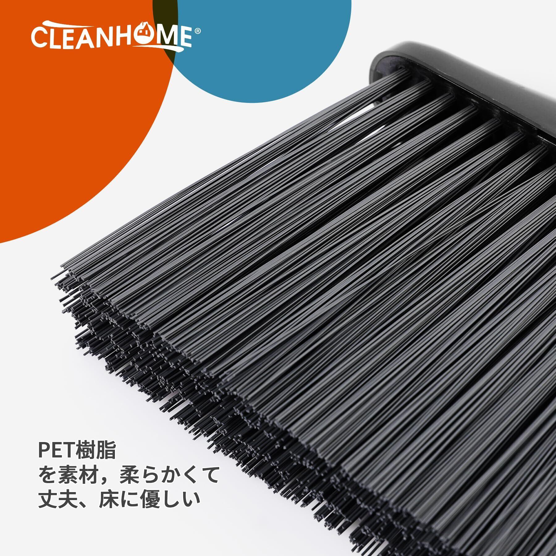 CLEANHOME ほうき ちりとり セット ほうき 室内 屋外 立て式 収納 4段ポール 長さ調節可能 41-117cm ノブ付き 防風 軽量 腰曲げず 掃除用品 アウトドア/玄関/ガーデニング/庭/ベランダ/美容室/コンビニ (ブラック)