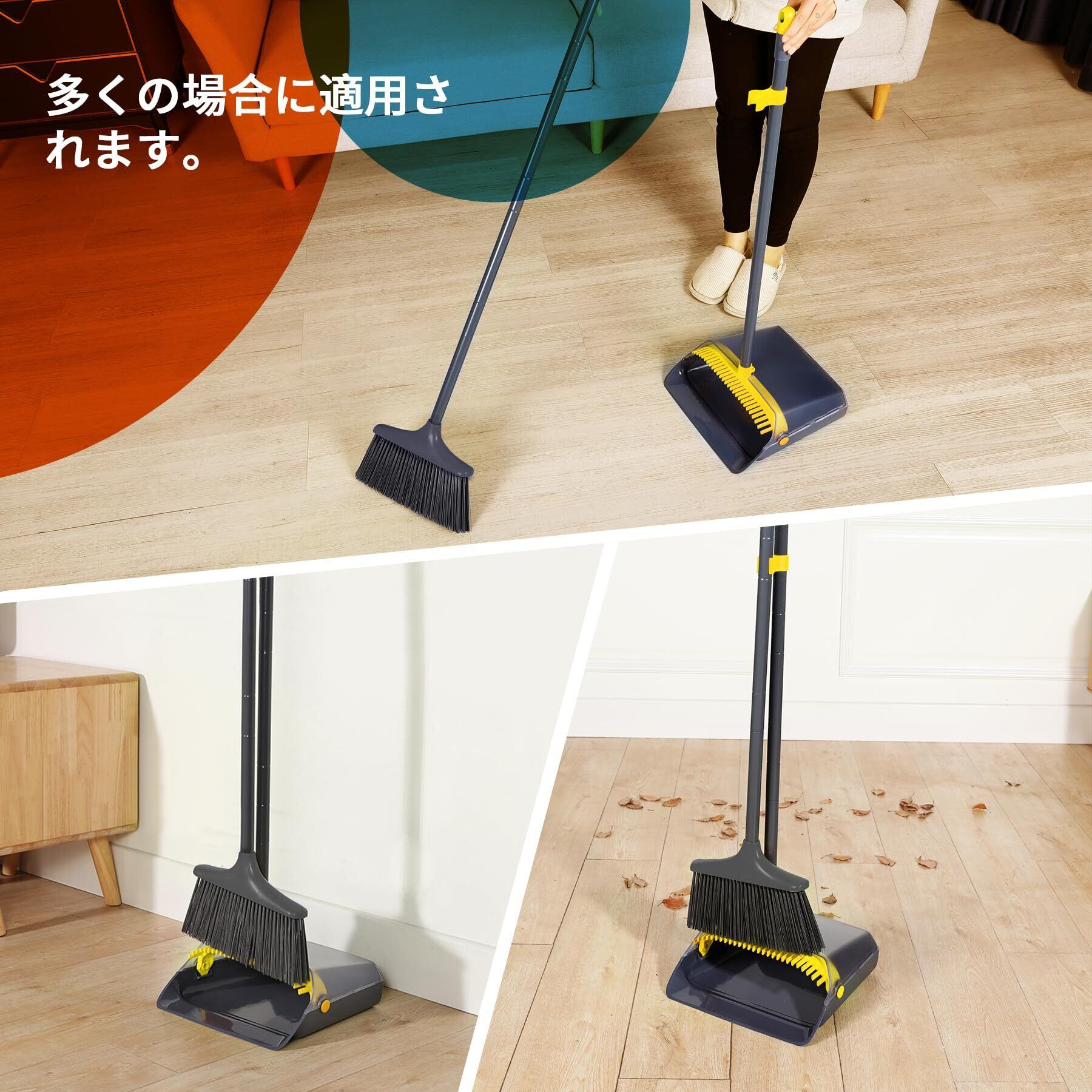 【自由調節 延長ポール付き】ほうきちりとりは人体デザインに適合、ほうきの高さは95〜132 cm、曲げの問題に別れを告げる、一本の延長ポールが付いていますので、ほうきにもちりとりにも使用でき、場所によってご自由に組み合わせます。例えば、天井を掃除する時は延長ポールを使用して長さは132cmになります。【適用場所】おしゃれなデザインで幅広く使用され 石床も木床も、部屋、屋外、玄関、ベランダ、美容室、コンビニ、会社、庭、ガレージ、ペットショップ 学校どが掃除できます。