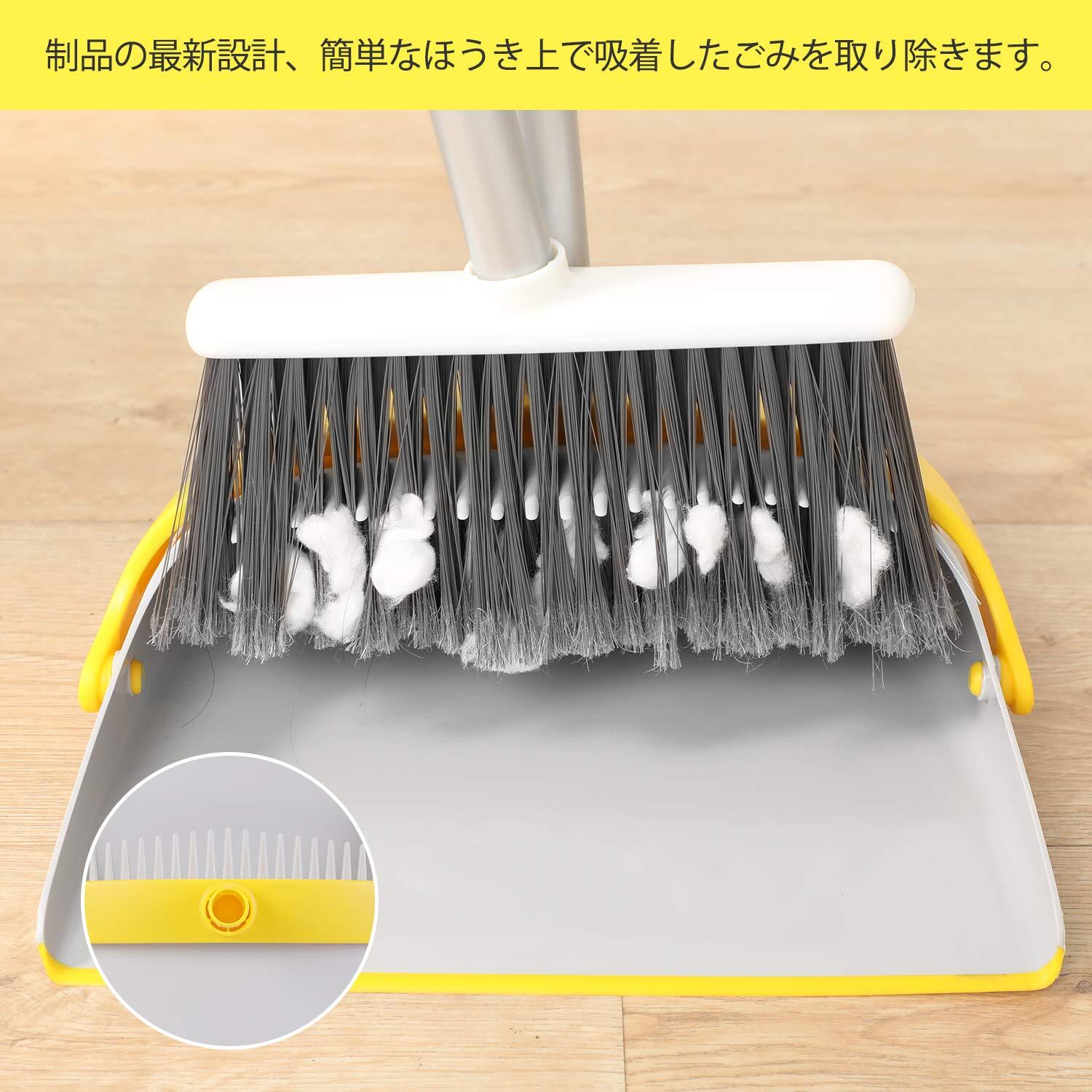 【自由調節 延長ポール付き】人体デザインに適合、ほうきの高さは95〜127 cm、曲げの問題に別れを告げる、一本の延長ポールが付いていますので、ほうきにもちりとりにも使用でき、場所によってご自由に組み合わせます。例えば、天井を掃除する時は延長ポールを使用して長さは127cmになります。【適用場所】おしゃれなデザインで幅広く使用され 石床も木床も、部屋、屋外、玄関、ベランダ、美容室、コンビニ、会社、庭、ガレージ、ペットショップ 学校どが掃除できます。