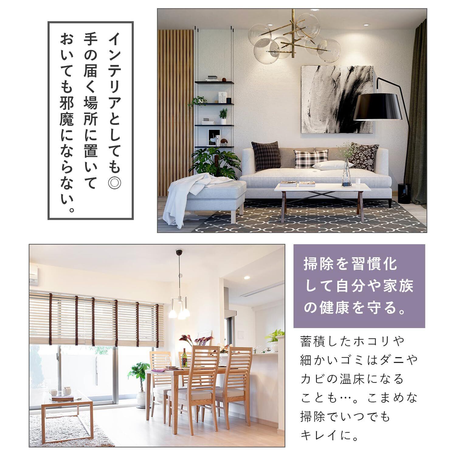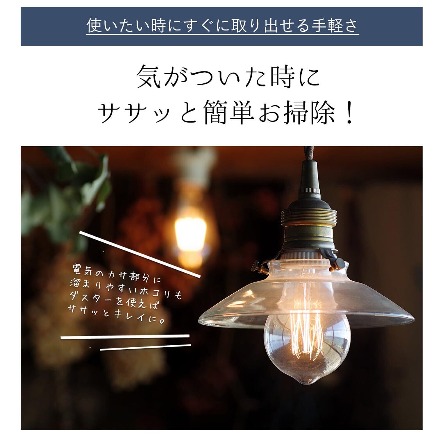 【使いたい時にすぐに取り出せる手軽さ】例えば電気のカサ部分、パソコンやエアコンなど ホコリが気になる場所をサッとお掃除。高いところにも手が届くサイズ感。 気になるホコリを短時間でサクッと落とすことができます。障子や窓の組子の部分のホコリも簡単にお掃除できます◎インテリアとして、手の届く場所に置いても邪魔にならないデザインです。