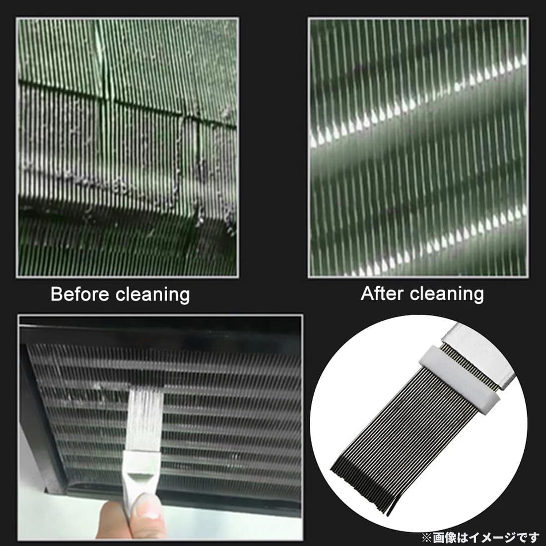 フィンコームは、コンデンサーのほこりをきれいにし、変形を抑えてコンデンサーを真っ直ぐにすることができます。