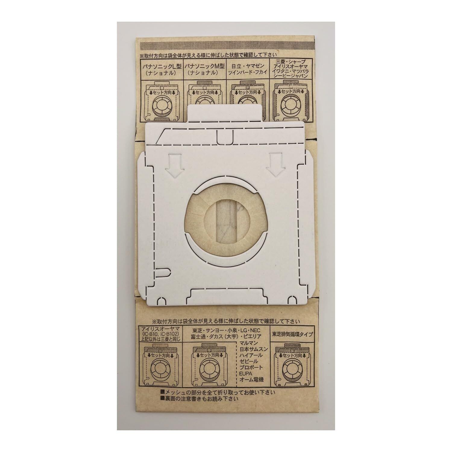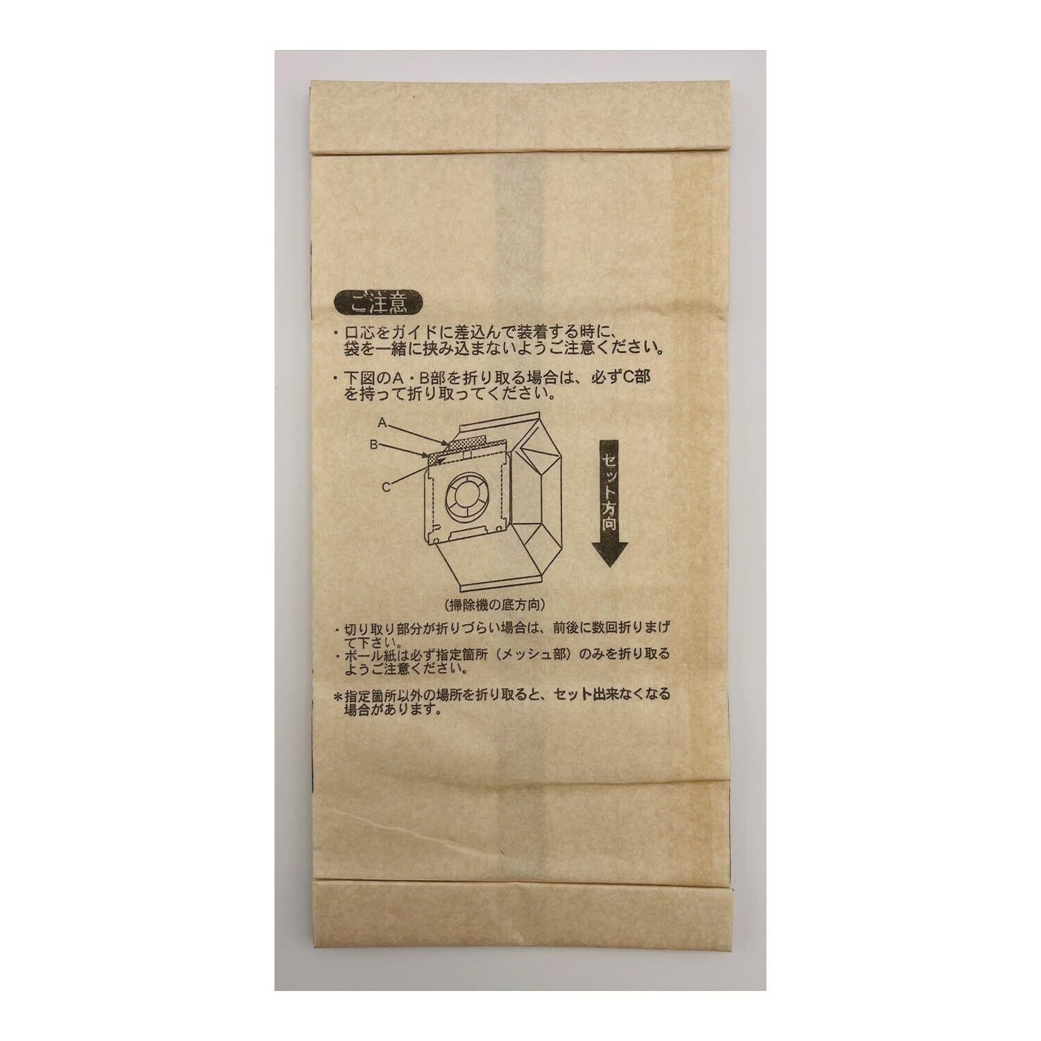 ・紙パック本体にセット方法が表示してありますので、よくお読みのうえ、正しくお取り付けください。排気循環式のそうじ機や袋が開きにくい場合は、セット前にあらかじめ袋を手で開いてからご使用ください。