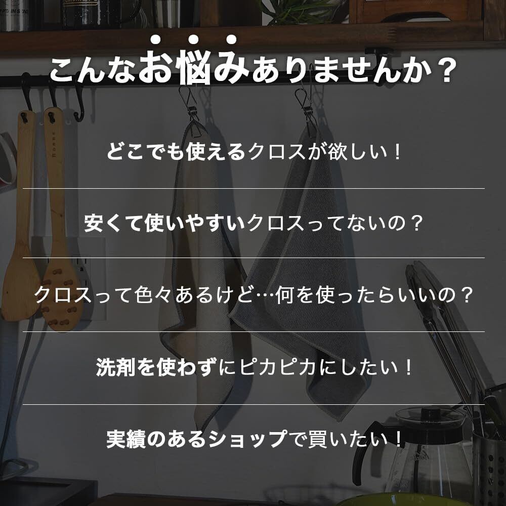 様々な場所に使えるマイクロファイバークロス。家具・照明器具等についた黒ズミ・皮脂汚れ等の拭き取りに。窓ガラスや鏡のくもり取りに。レンジまわりやキッチン壁面等の拭き掃除に。