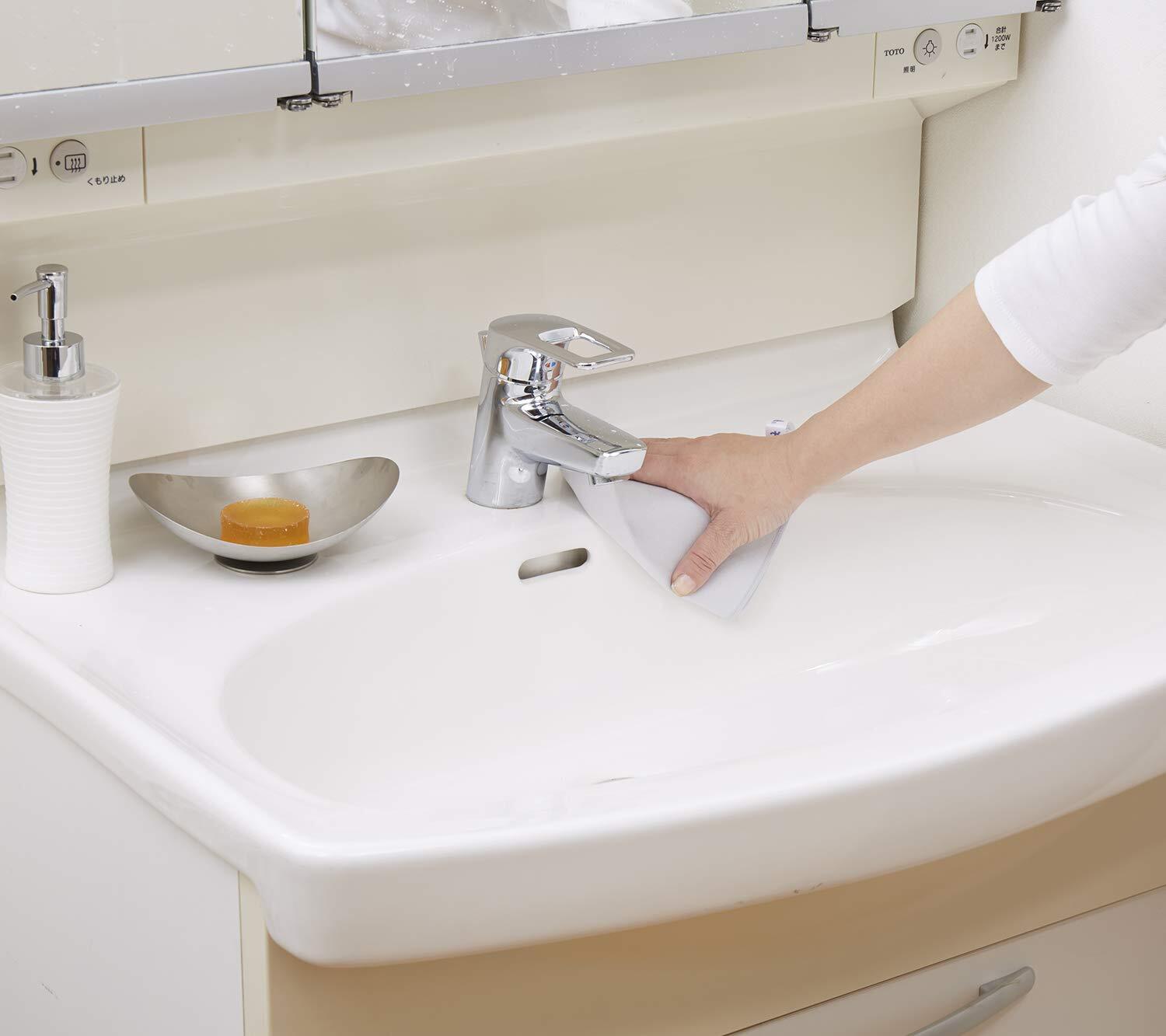 鏡についた汚れ、濡れた洗面台もサッとひと拭き。