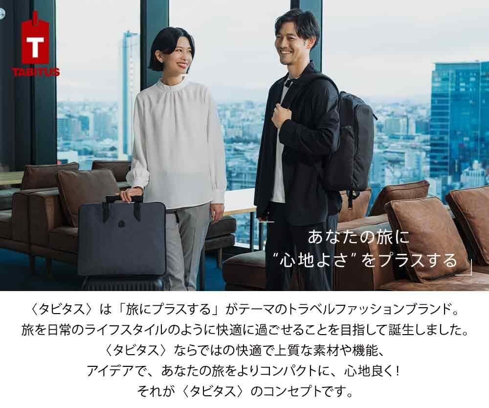 【TABITUS/タビタス】「旅にプラスする」がテーマのトラベルファッションブランド。旅を日常のライフスタイルのように快適に過ごせることを目指て誕生しました。〈タビタス〉ならではの快適で上質な素材や機能、アイデアで、あなたの旅をよりコンパクトに、心地良く!それが〈タビタス〉のコンセプトです。