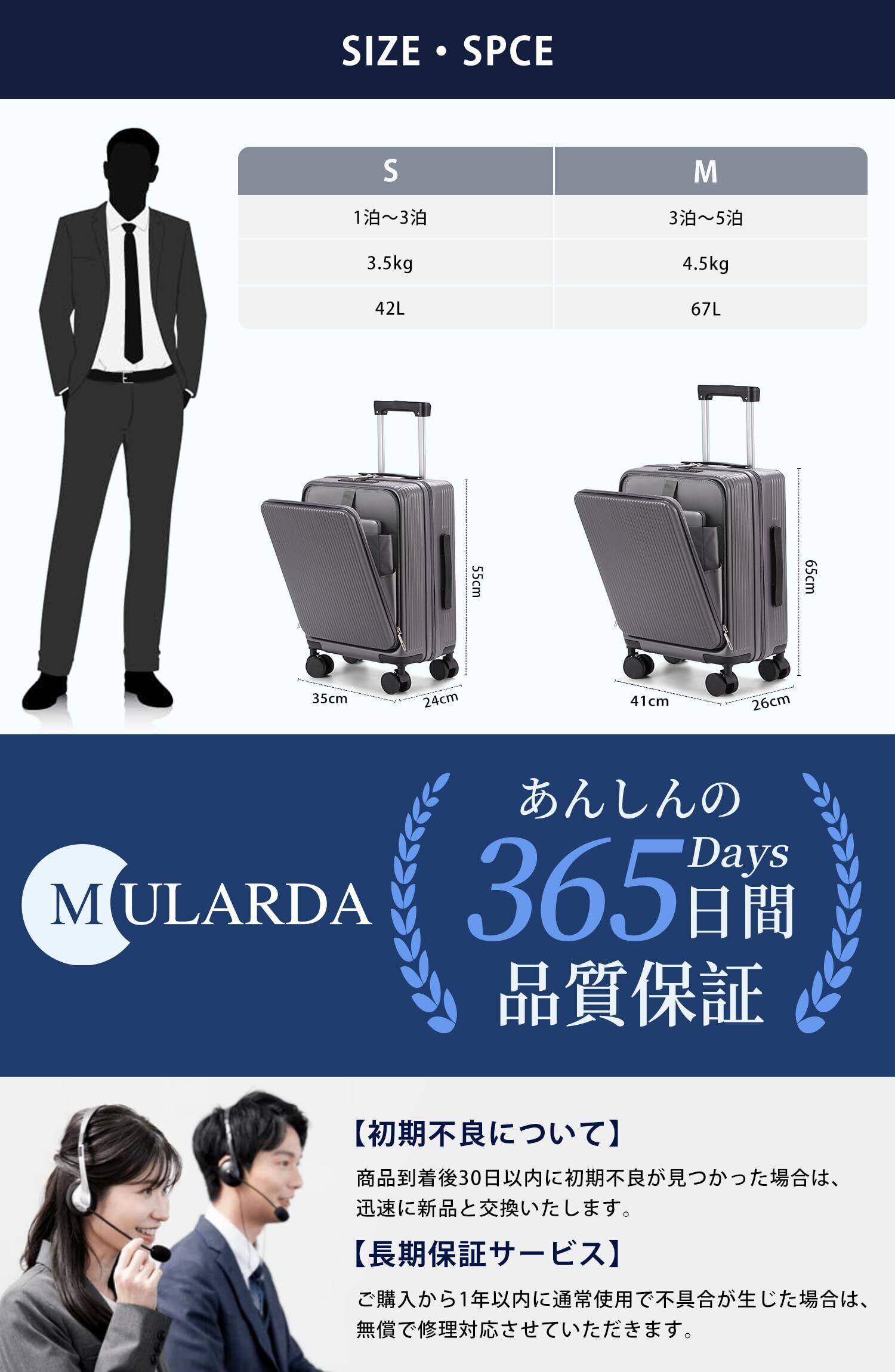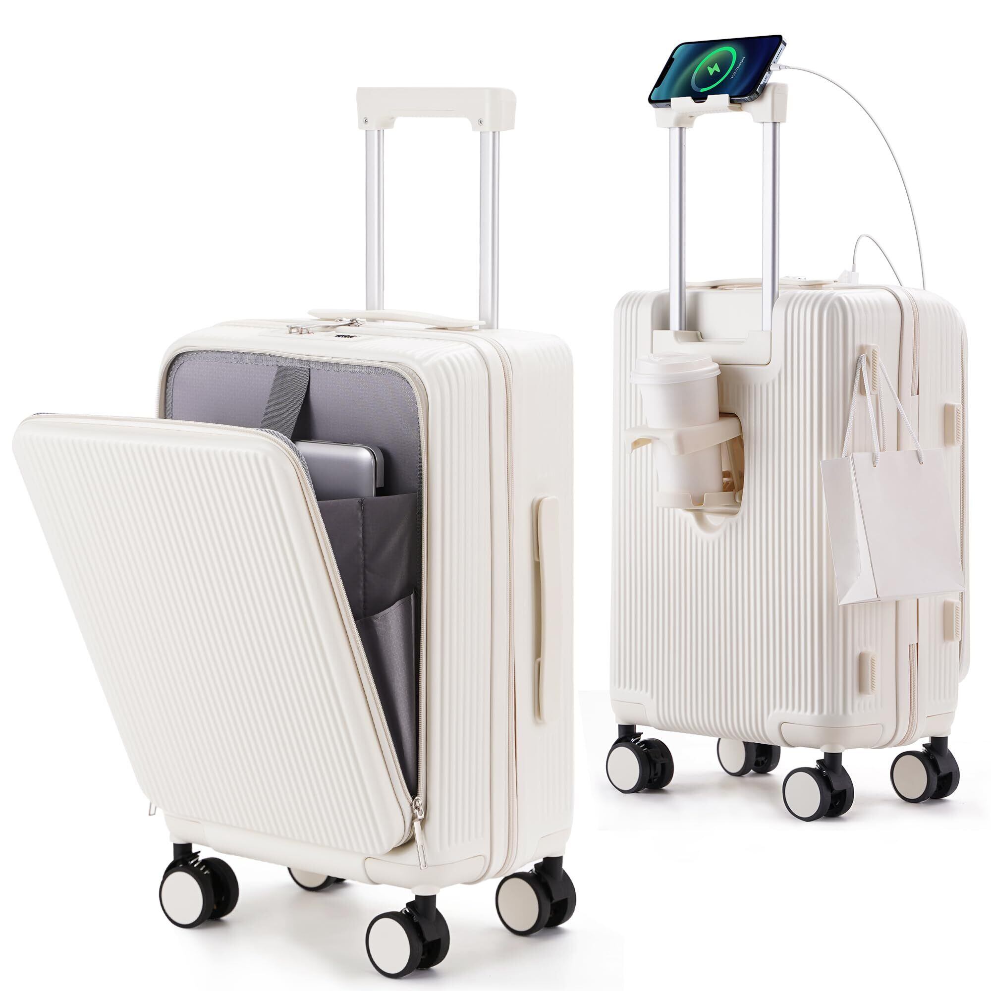 [MULARDA] 前開きキャリーケース スーツケース機内持ち込み 耐衝撃 超軽量 USBポート付き Sサイズ 大容量 1-3泊 旅行 ビジネス 出張 ホワイト
