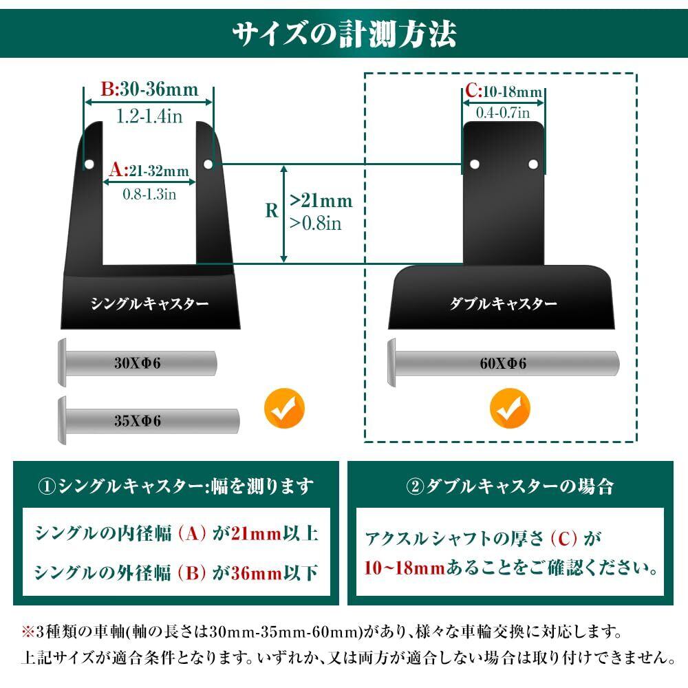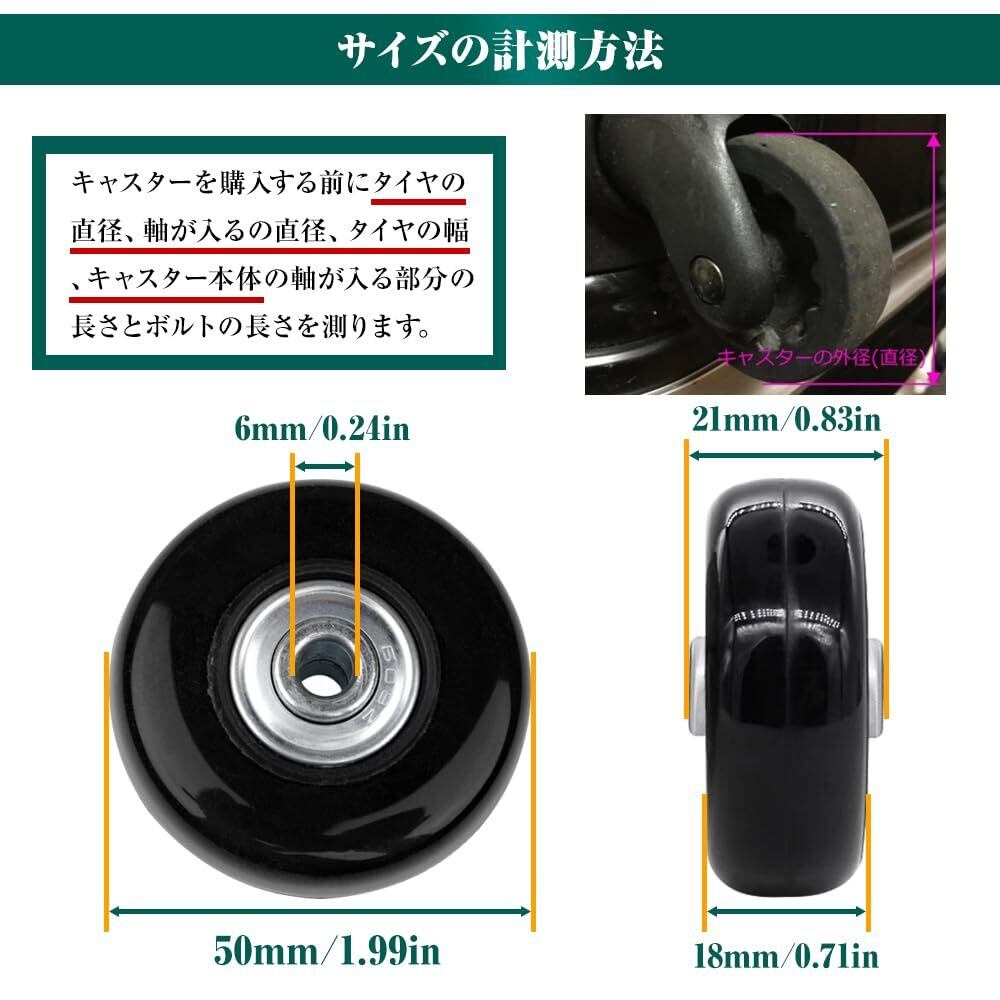 【商品サイズ】:スーツケース キャスター 交換 車輪は輪外径50mm、輪幅18mm、軸受部幅21mm、輪中心軸孔径6mm。30mm、35mm、60mmの3種類のボルトが付いております。【車輪交換と修理用】ご愛用のスーツケースやキャリーバッグ などの車輪が劣化すると、この車輪用修理キットで簡単に交換できます。初心者でも簡単に取り付けます。消耗したキャスターを自分で簡単に交換!ご購入前には必ずキャスターのサイズをご確認ください。