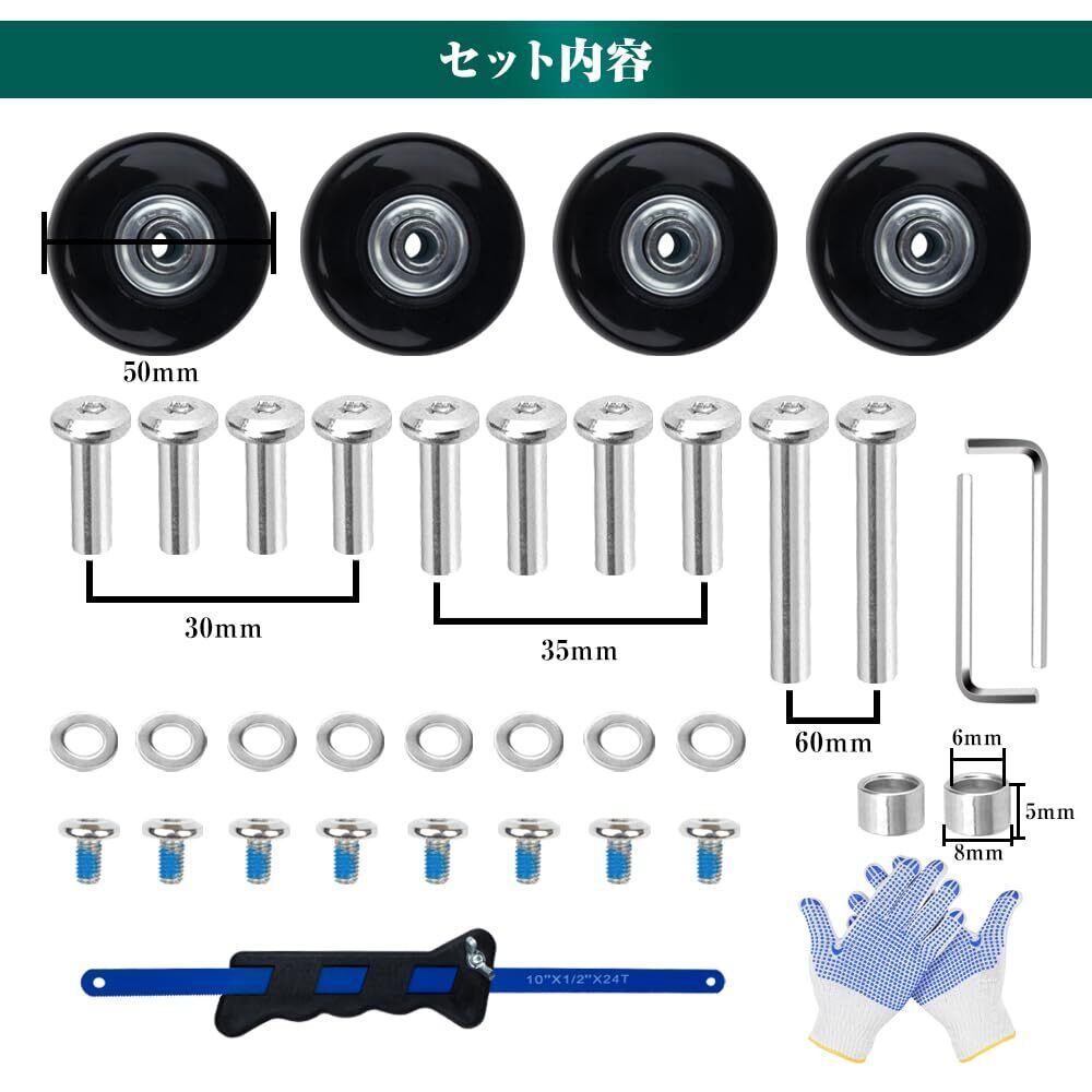 スーツケースタイヤ交換キット 4個セット 車輪 補修 静音 スーツケース タイヤ 交換 修理キット キャリーバッグ 車輪 DIY 取替え ノコギリ付き (ブラック-50mm*18mm)