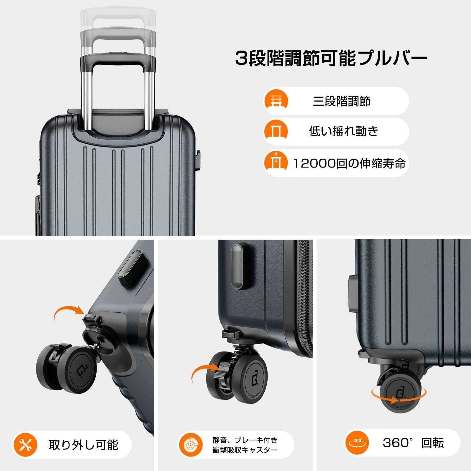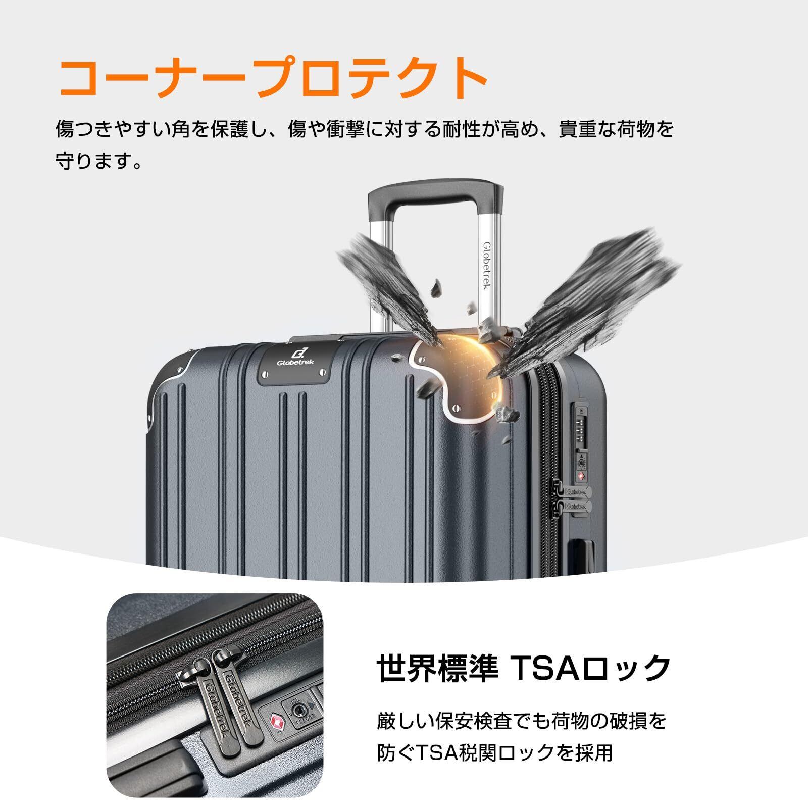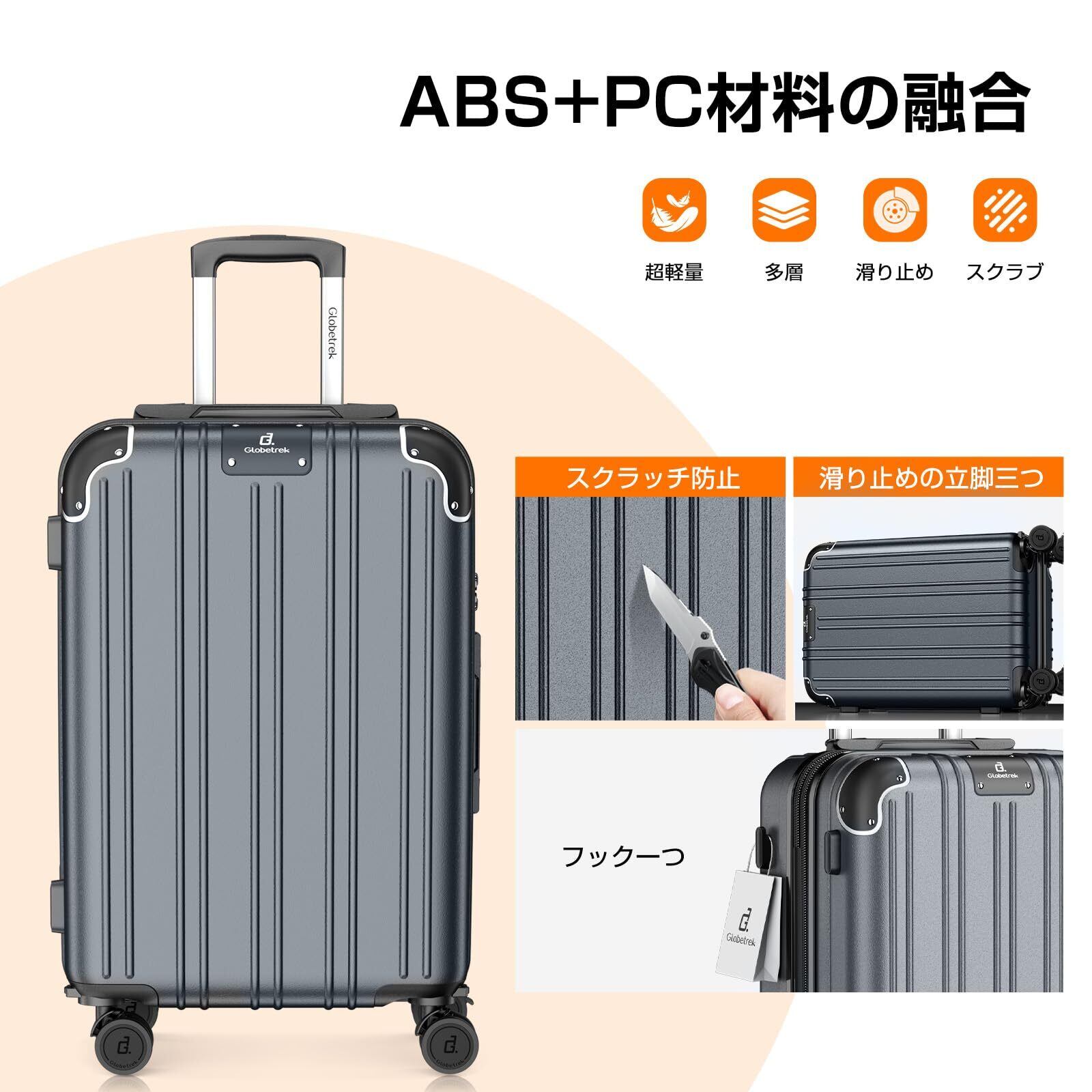 [Globetrek] 現役CA監修・日本企業企画 スーツケース キャリーケース 機内持ち込み 拡張機能付き 超軽量 耐衝撃 キャリーバッグ 多機能 360度回転 ストッパー付 静音 luggage suitcase 大容量 大型 TSAロック 旅行 ビジネス 出張(グレー,Sサイズ/機内持ち込み:1~3泊/40L)