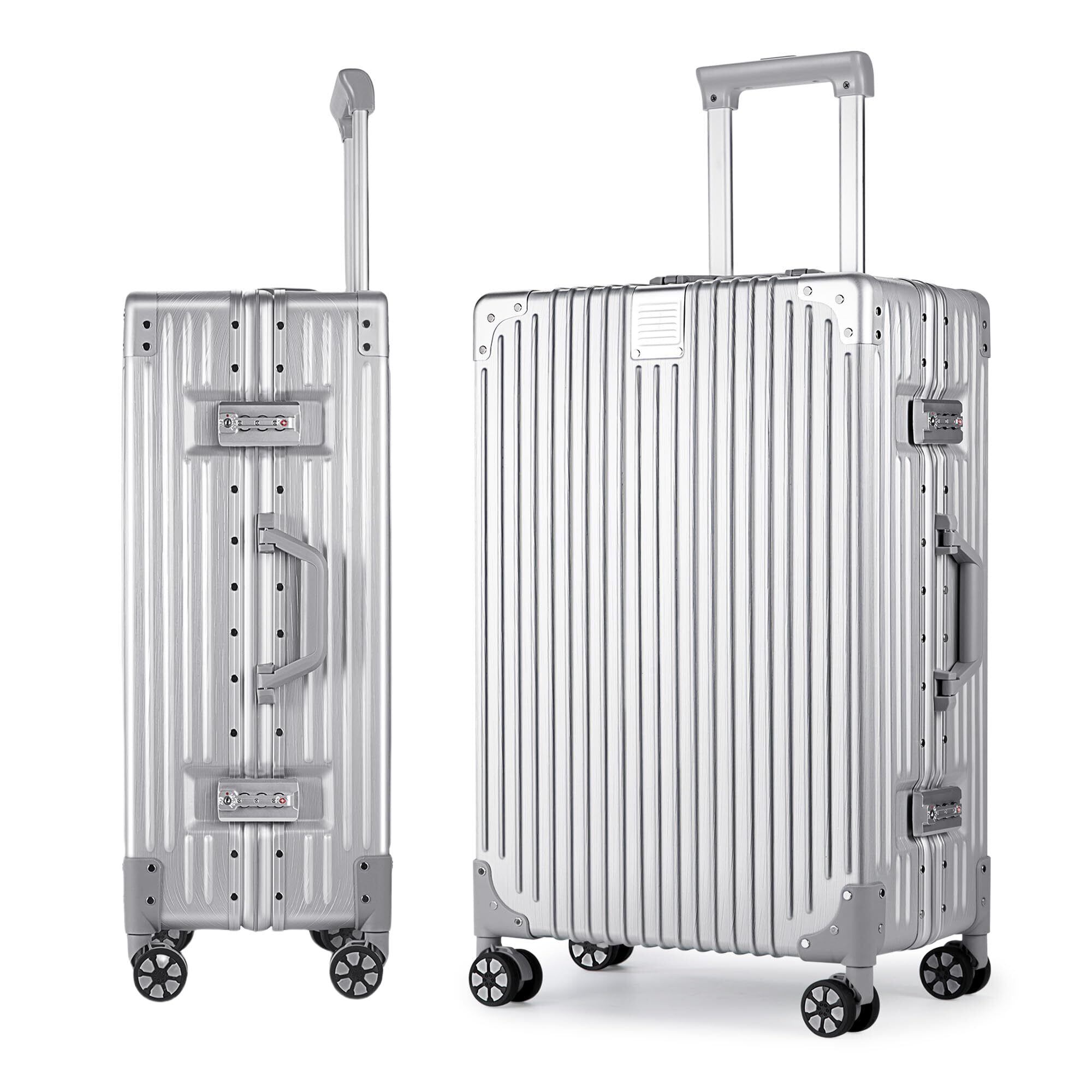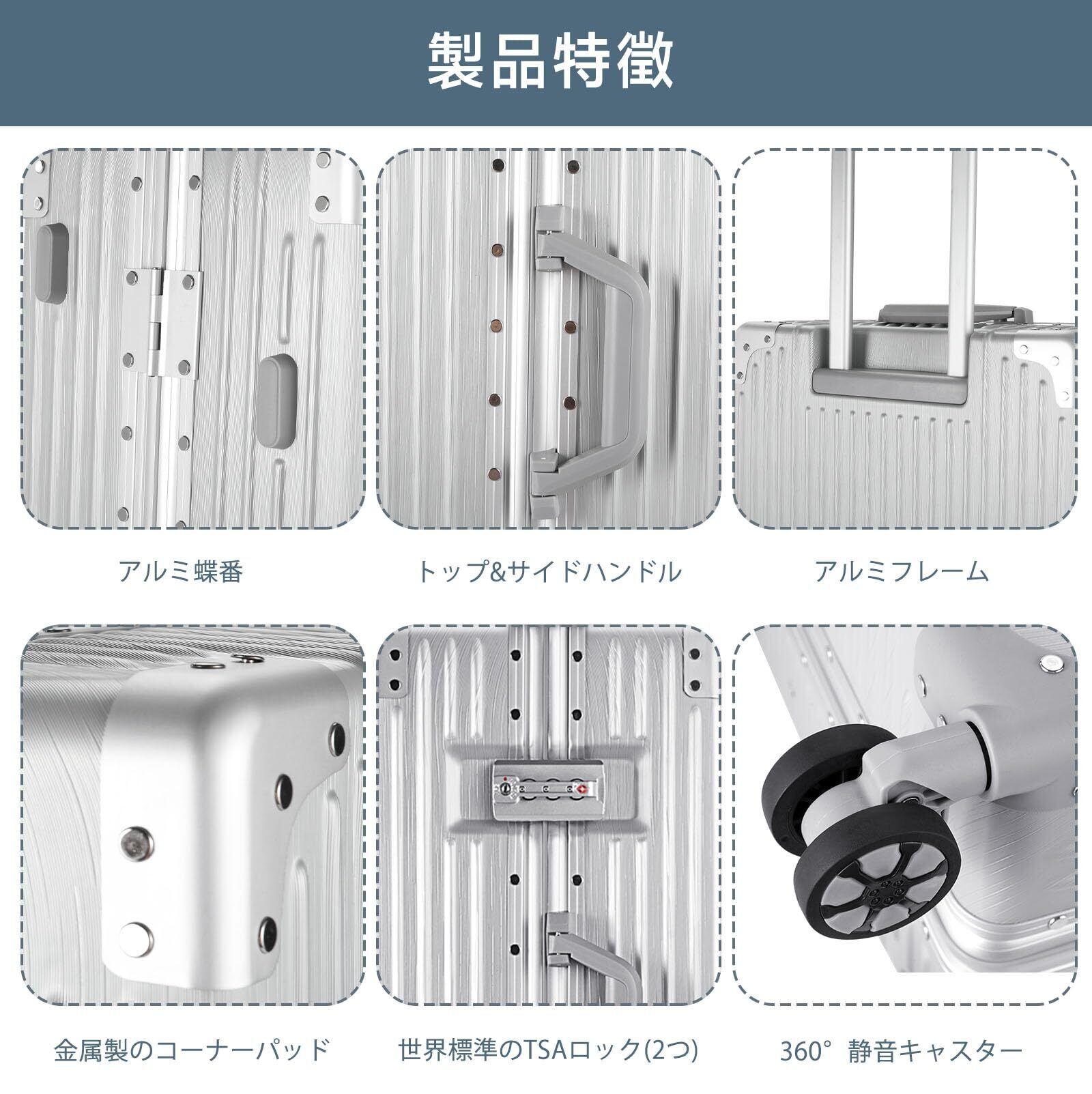[RoamRover] スーツケース アルミフレーム 機内持ち込み キャリーケース tsaロック付 キャリーバッグ 大容量 轻量 360度回転 静音 ダブルキャスター オシャレ 海外旅行出張 修学 (シルバー, Mサイズ/46L)